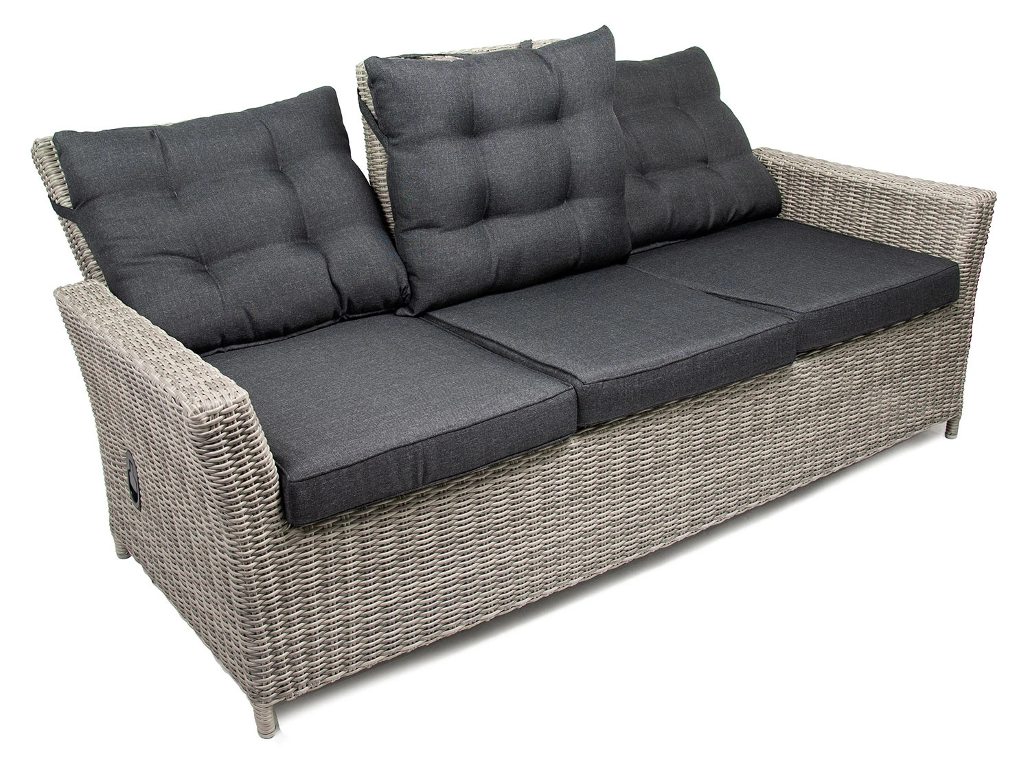 - Die Rückenlehnen der beiden Sessel und die beiden äußeren Rückenlehnen des Sofas können dank Gasdruckfeder stufenlos verstellt werden