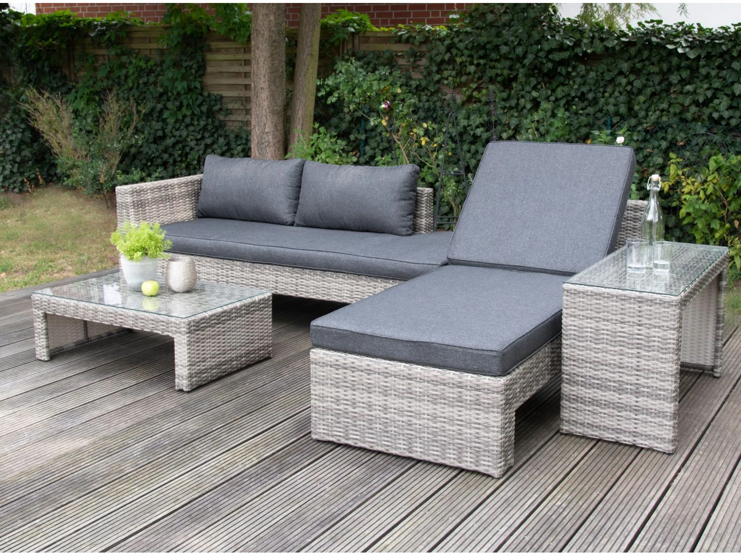 - Set bestehend aus: Sofa, Lounge mit verstellbarer Lehne, 2 Tische