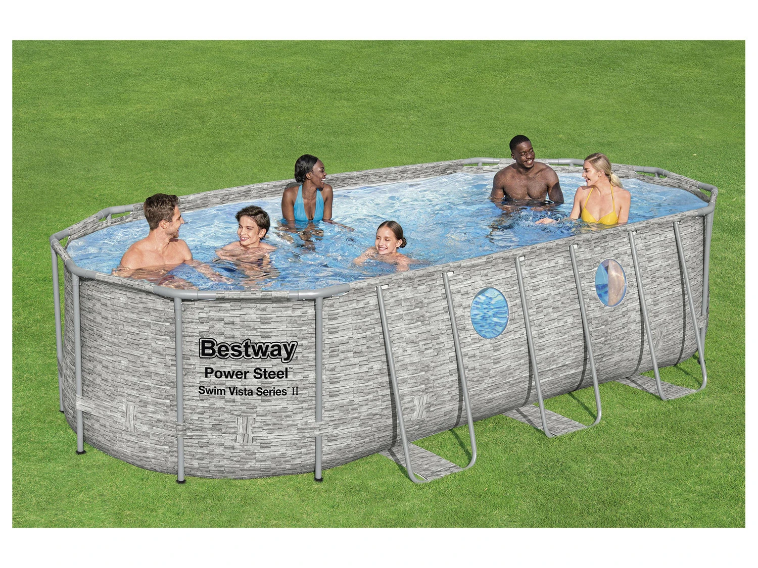 - 4 integrierte Bullaugen in den Poolwänden