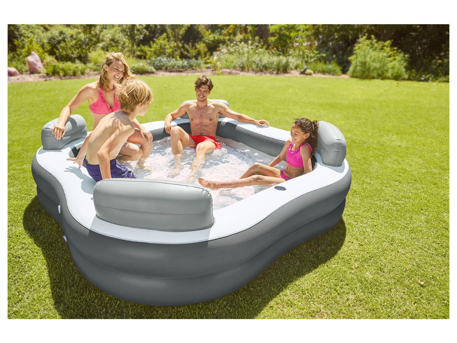 CRIVIT® Relax-Planschbecken L 268 x B 268 x H 66 cm, mit Sitzkissen