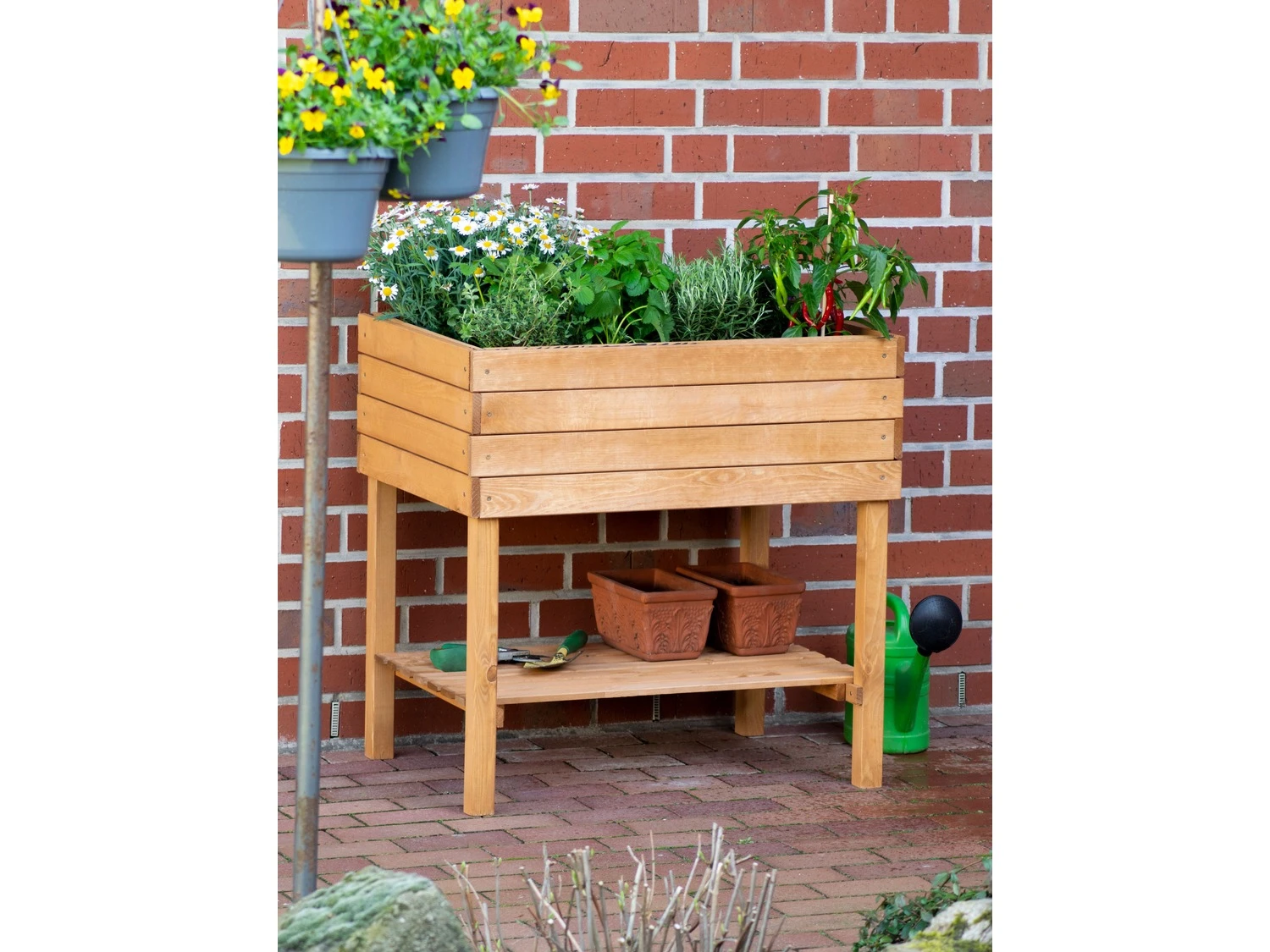 Mit diesem Hochbeet arbeiten Sie entspannt auf normaler Arbeitshöhe, was Rücken und Knie schont. Ein Hochbeet ist somit für jede Alterstufe geeignet.