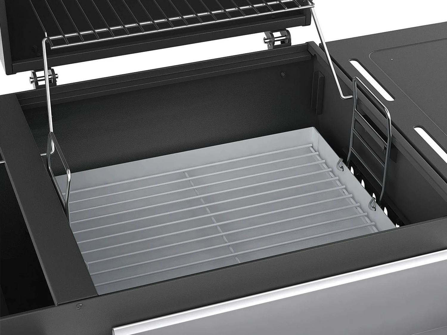 - Zwei Garkammern für Holzkohlegrillen und Gasgrillen