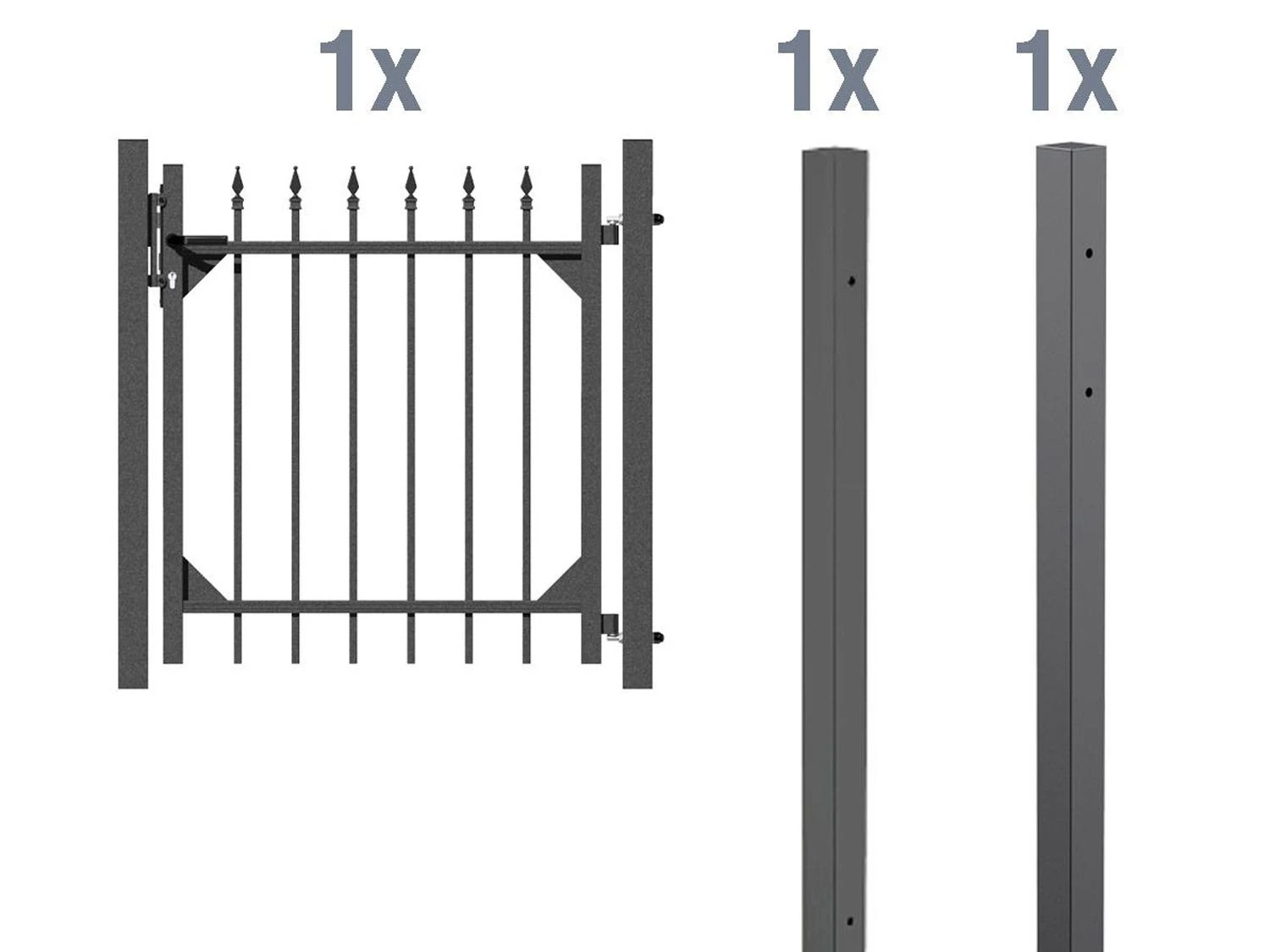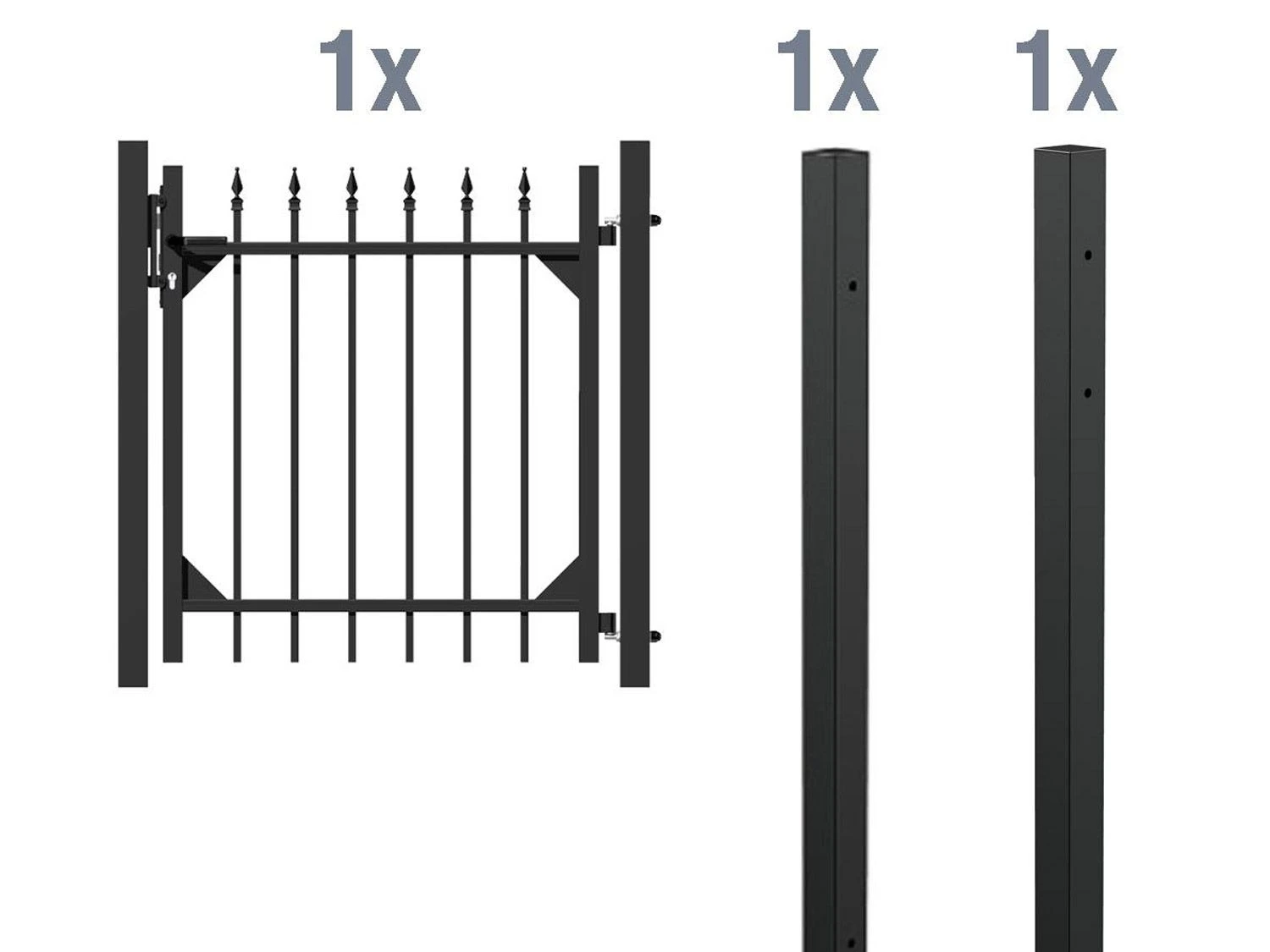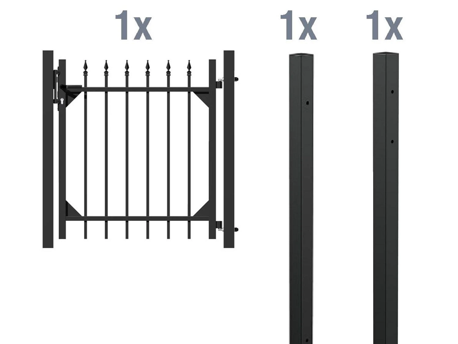 Das Einzeltor lässt sich mit weiteren Zaunsets ergänzen, so dass Sie sich einen kompletten Zaun zusammenstellen können.