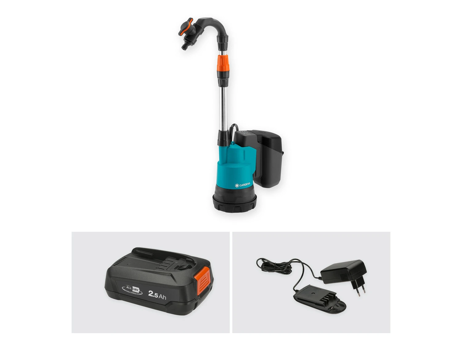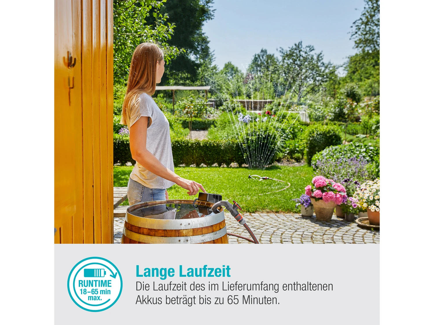 Die Regenfasspumpe 2000/2 wird als Ready-To-Use Set mit Schnell-Ladegerät und einem 2,5-Ah-18V-POWER-FOR-ALL-Akku geliefert. Die maximale Laufzeit liegt bei 18 bis 65 Minuten, je nach gewähltem Modus. Die POWER FOR ALL ALLIANCE ist eine der größten markenübergreifenden Akku-Allianzen führender Hersteller. Der Akku kann für zahlreiche weitere Geräte rund ums Haus und den Garten genutzt werden – so spart man Geld und ist flexibel.