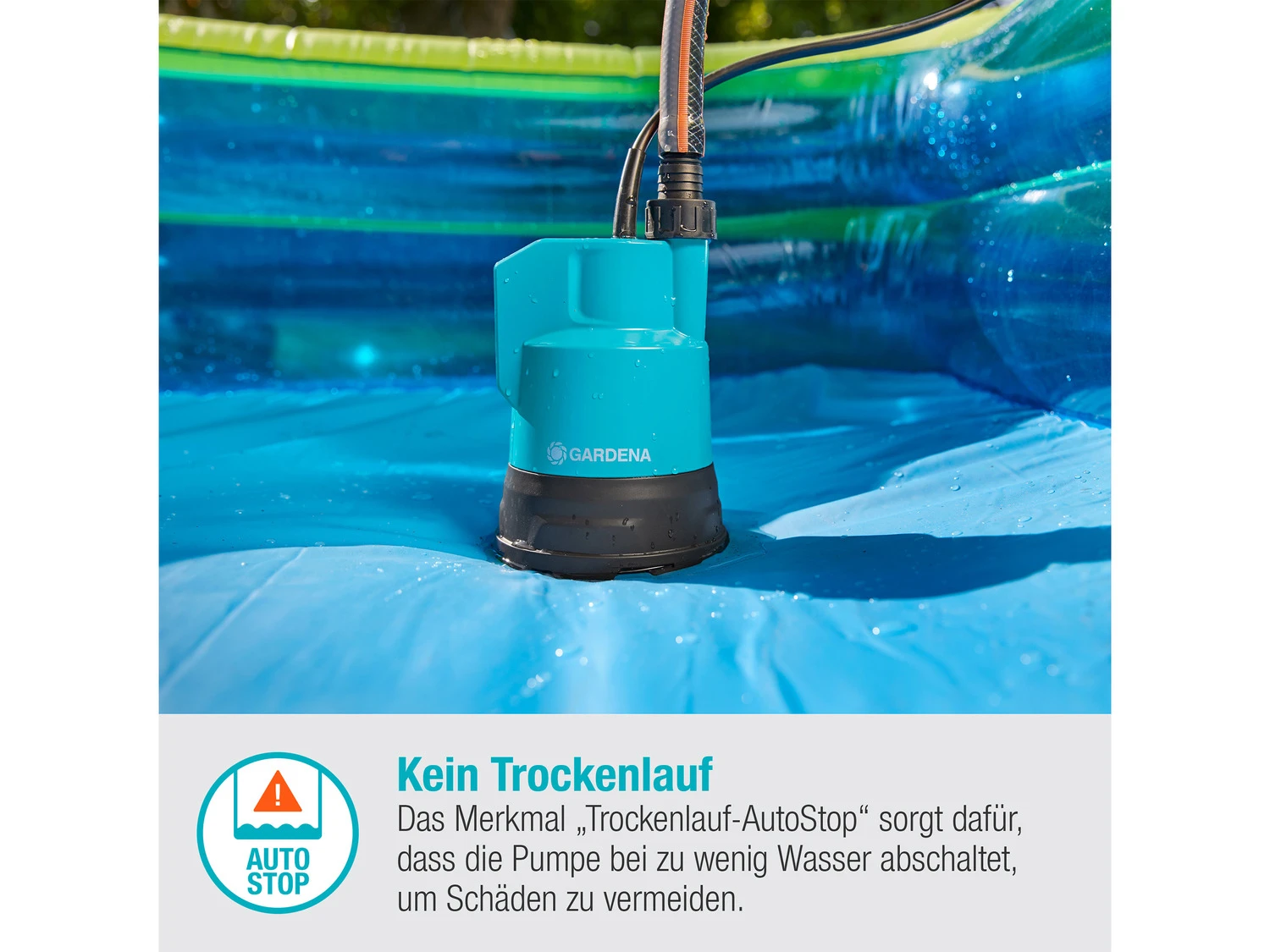 - Trockenlaufsicherung AutoStop gewährleistet, dass die Regenfasspumpe nicht trockenläuft