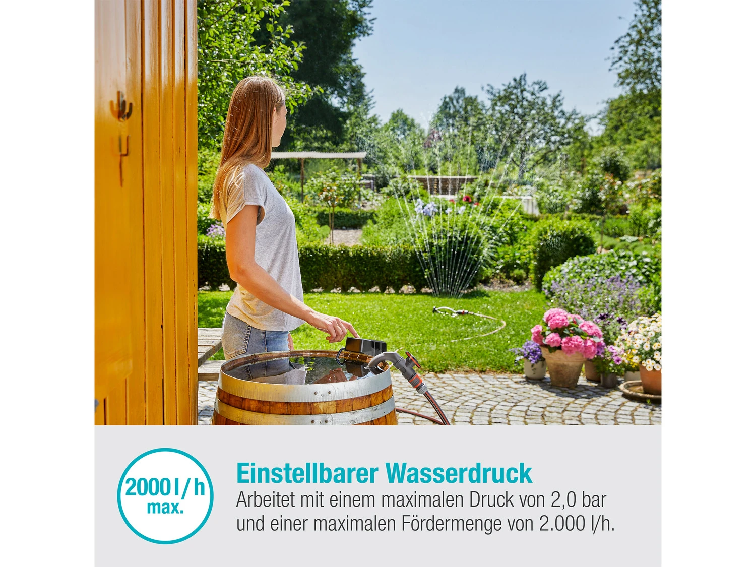 Gardena Akku-Regenfasspumpe »2000/2 18V P4A«, Ready-To-Use Set, 2000 l/h