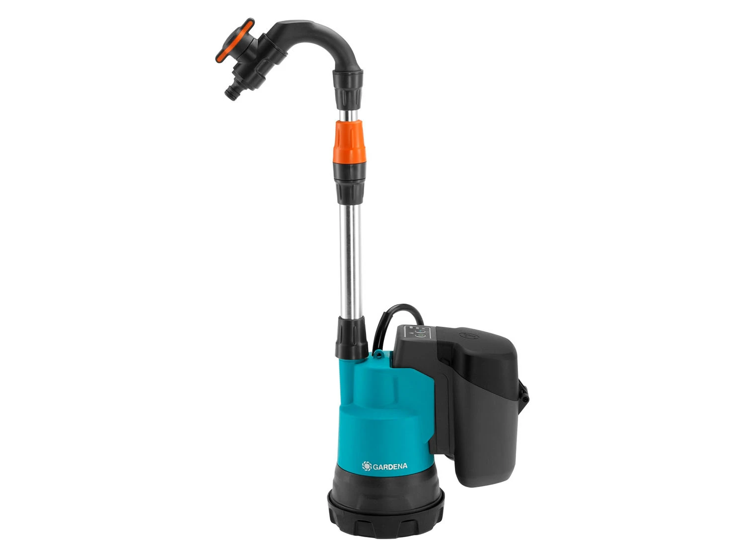 Die GARDENA Akku-Regenfasspumpe 2000/2 18V P4A ist leicht, robust und langlebig – und sie arbeitet auch dort, wo es keinen Stromanschluss gibt. Die Länge des Alu-Teleskoprohrs kann an die Höhe des Regenfasses angepasst werden. Die Förderkapazität der Fasspumpe liegt bei 2.000 Litern pro Stunde, der Leistungsdruck bei 2,0 bar. Kombiniert mit einer GARDENA Spritze, Brause oder einem Regner werden Sträucher, Blumen und der Rasen optimal mit Wasser versorgt. Der Durchlauf lässt sich dank des Regulierventils nach Bedarf einstellen – auch eine Tropfbewässerung ist möglich. Die Dauer der Beregnung kann per Timer voreingestellt werden (5, 10 oder 15 Minuten). Sie schaltet sich danach automatisch ab. Ist das Regenfass schon vorher leer, sorgt ein Trockenlaufschutz dafür, dass die Pumpe nicht beschädigt wird. Ein leicht zu reinigender Vorfilter hält Schmutz ab. Natürlich kann man die Gartenpumpe nicht nur in Regentonnen einsetzen, sondern auch für andere Um- und Abpump-Aufgaben.