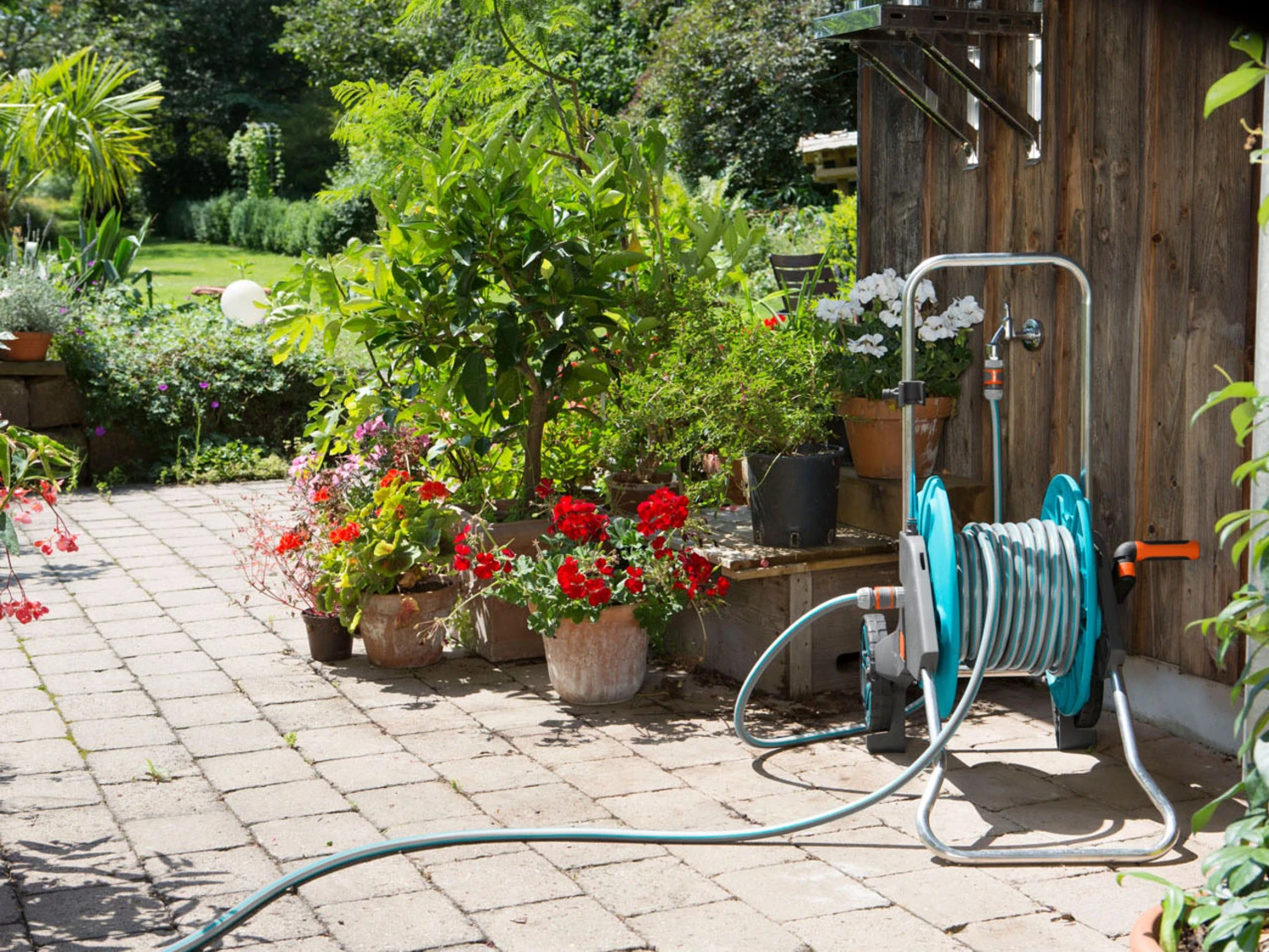 - Komplett bestückt mit Original GARDENA Systemteilen und Hahnverbindern