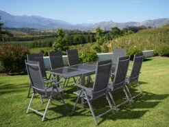 LIVARNO Home Alu-Set »Houston« 9-teilig – Ausziehtisch & 8 Hochlehner/Klappsessel, Schwarz/anthrazit