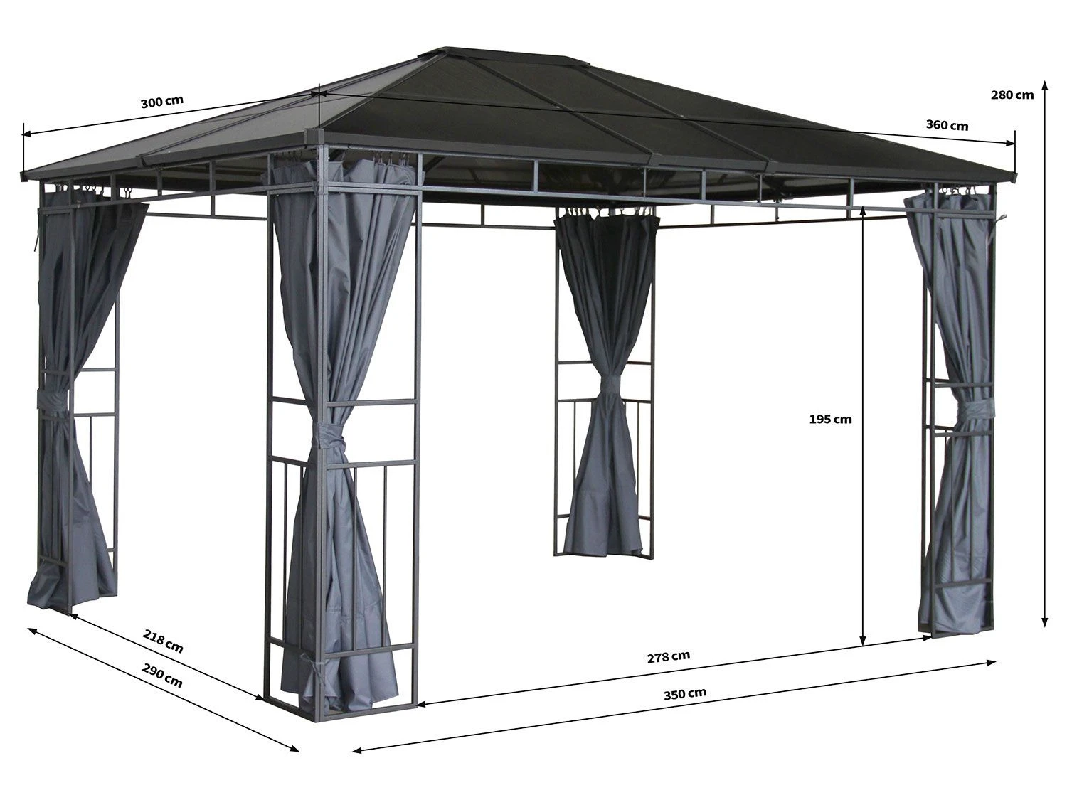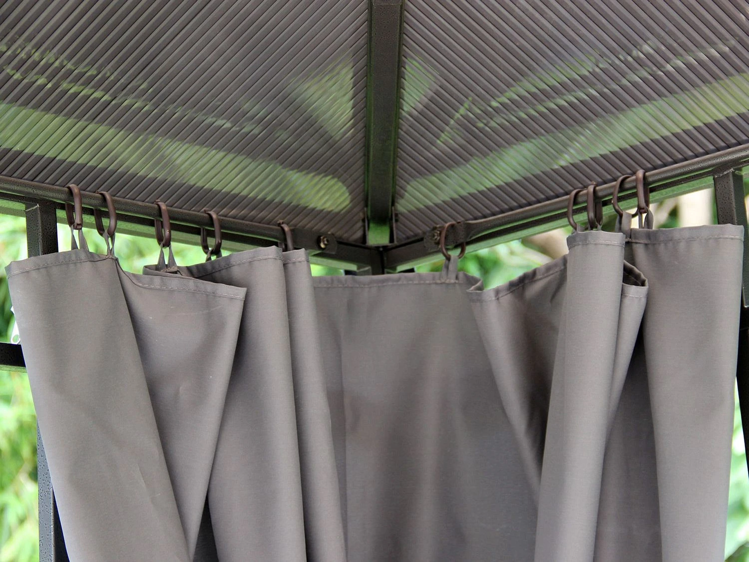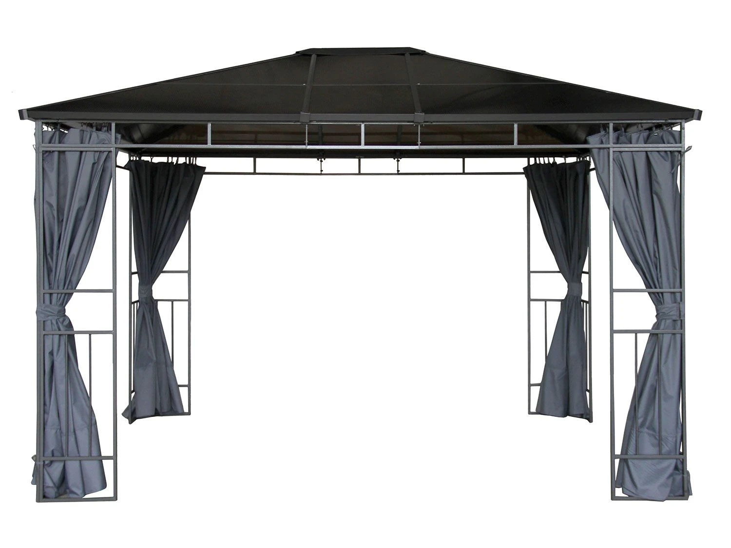 Der Hardtop-Pavillon wird inkl. vier Seitenteilen geliefert, diese können einzeln über ein Schienensystem bewegt werden und je nach Bedarf mit einem Reißverschluss geschlossen werden. Sie sind witterungsbeständig und wasserabweisend.