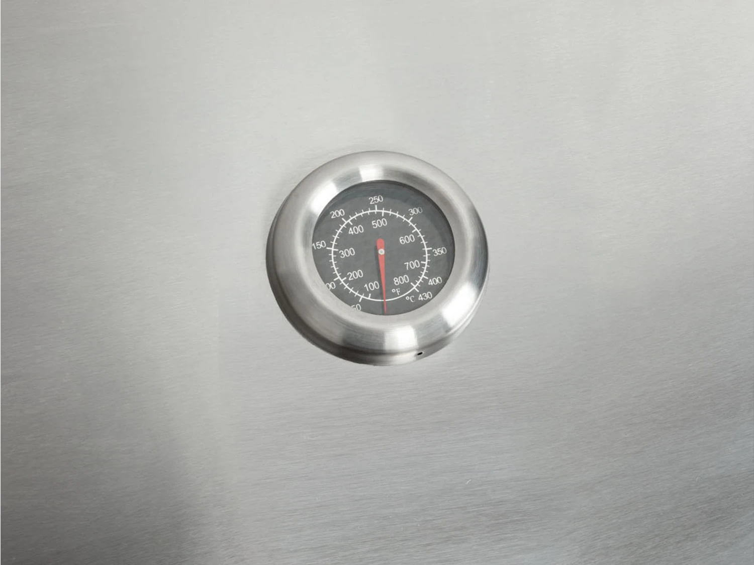 - Doppelwandige Edelstahlhaube mit integriertem Thermometer
