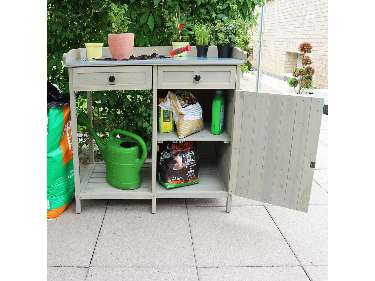 - Stauraum ohne Ende: Mit einer Ablagefläche für Grillkohle oder Blumenerde direkt unter der Arbeitsplatte