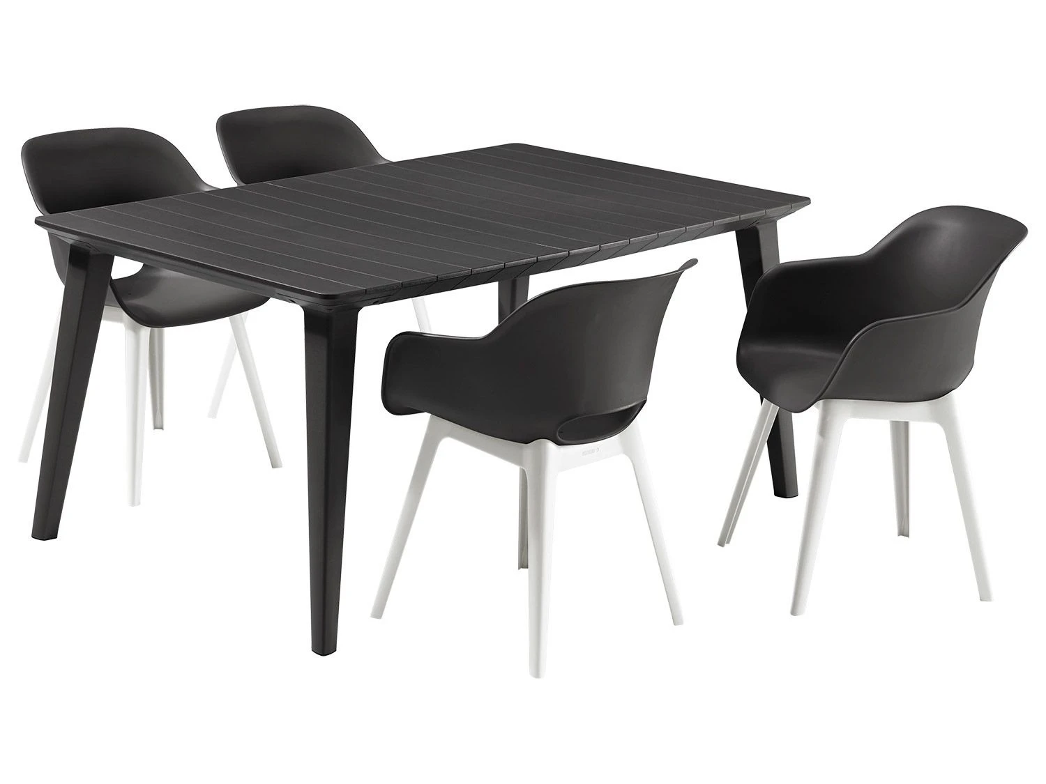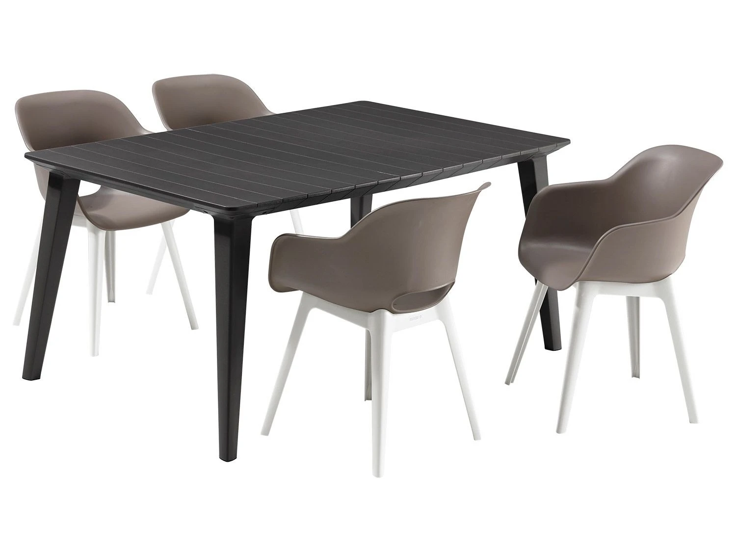 - Das Gartenmöbel Set verfügt über ein elegantes Design und ist aus einem langlebigen, witterungsbeständigen Kunststoff gefertigt, der niemals zerfällt, rostet, vermodert oder verblasst