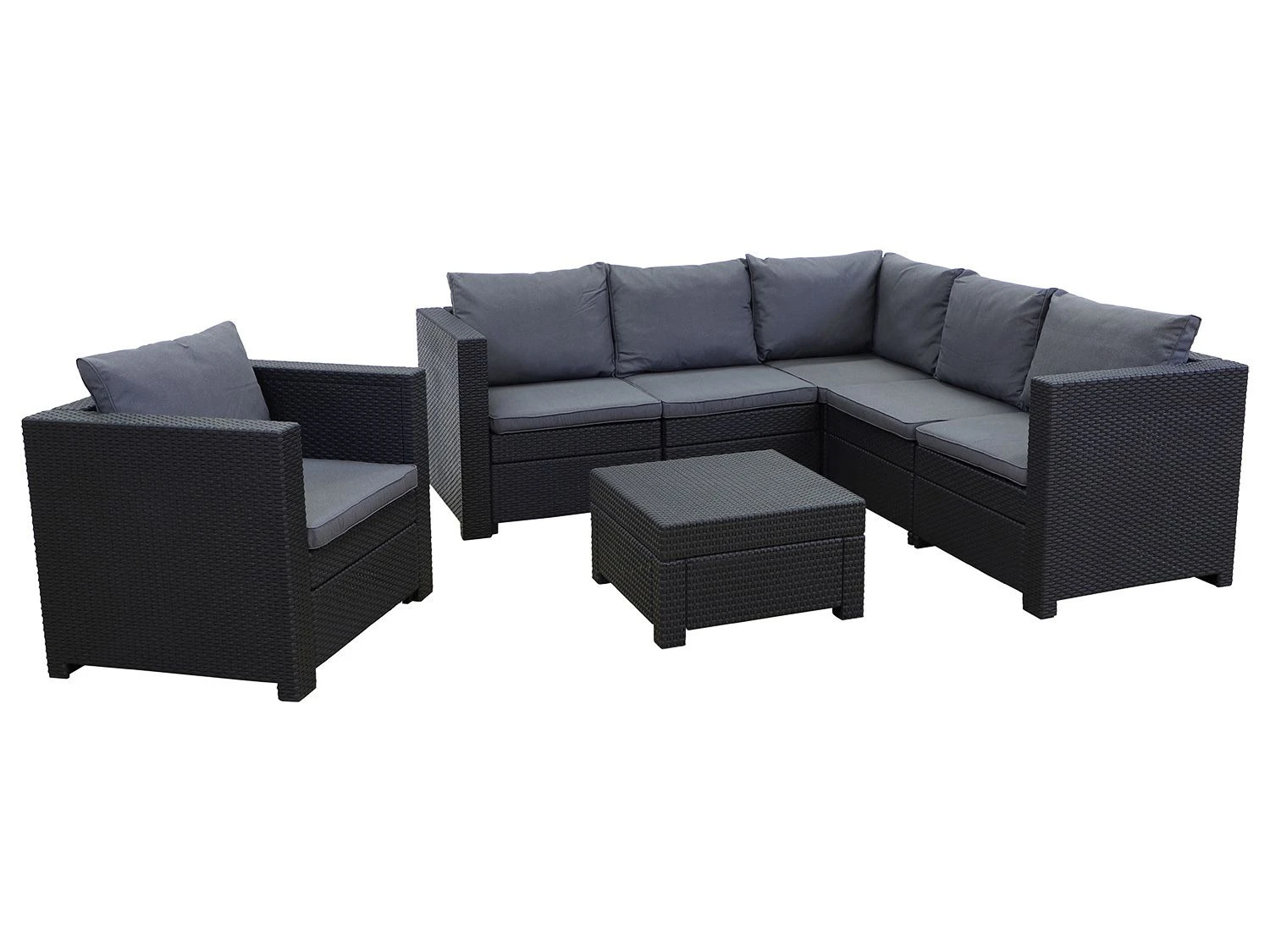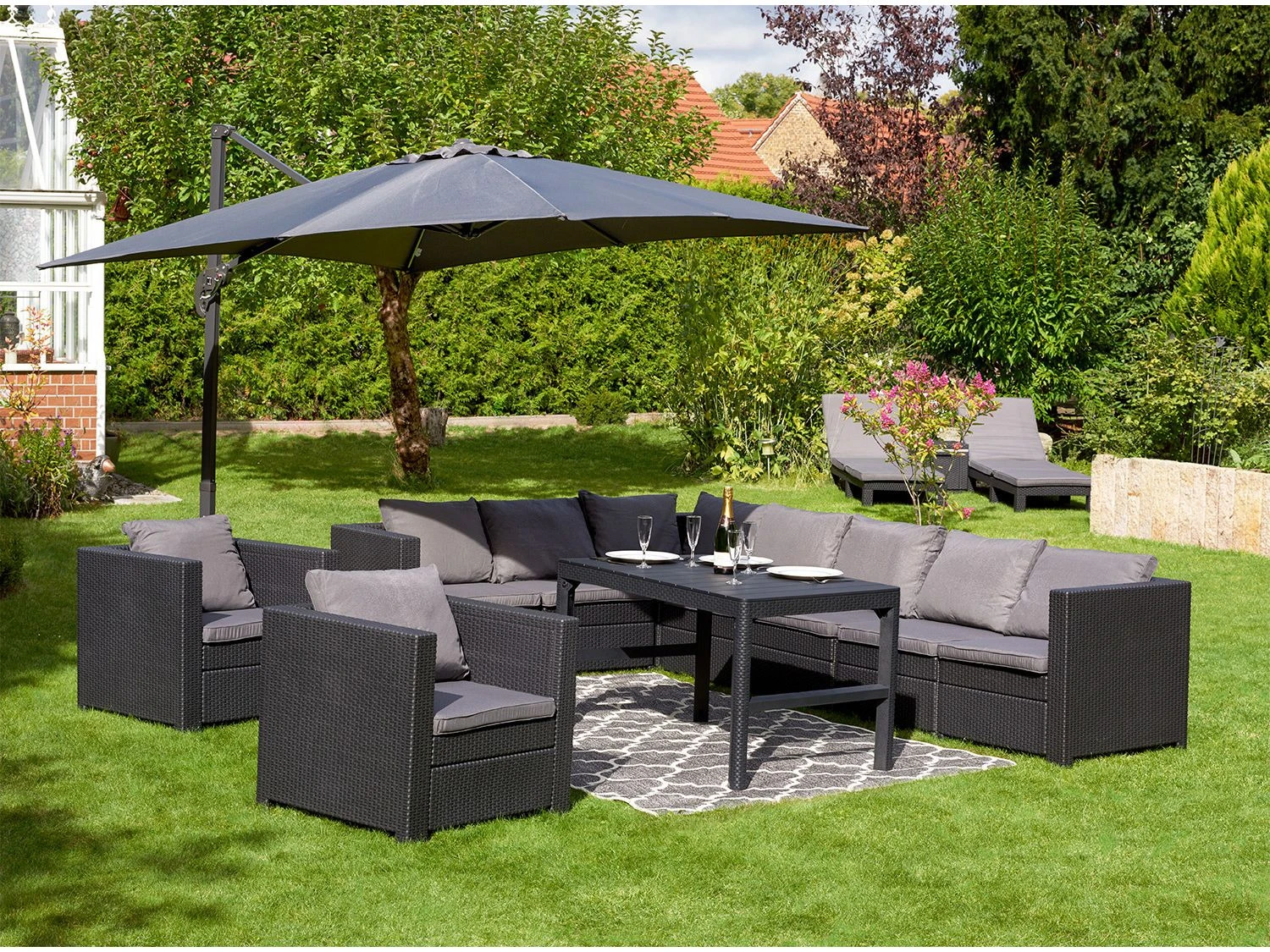- Lounge Ecke Provence besteht aus zwei Teilen, die am Ecksegment nur angeschoben werden (für eine erleichterte Reinigung der Terrasse)