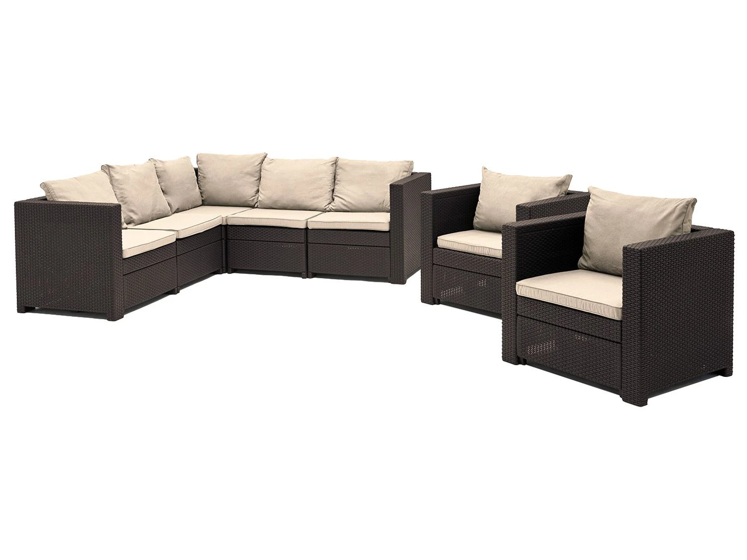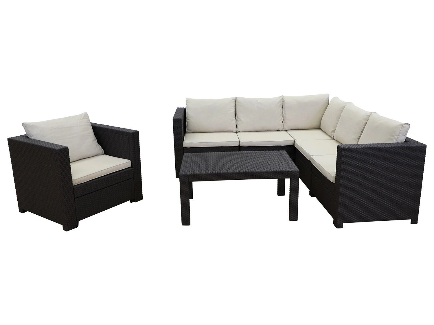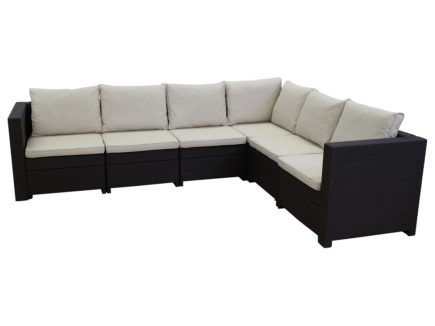 - Lounge Ecke Provence besteht aus zwei Teilen, die am Ecksegment nur angeschoben werden (für eine erleichterte Reinigung der Terrasse)
