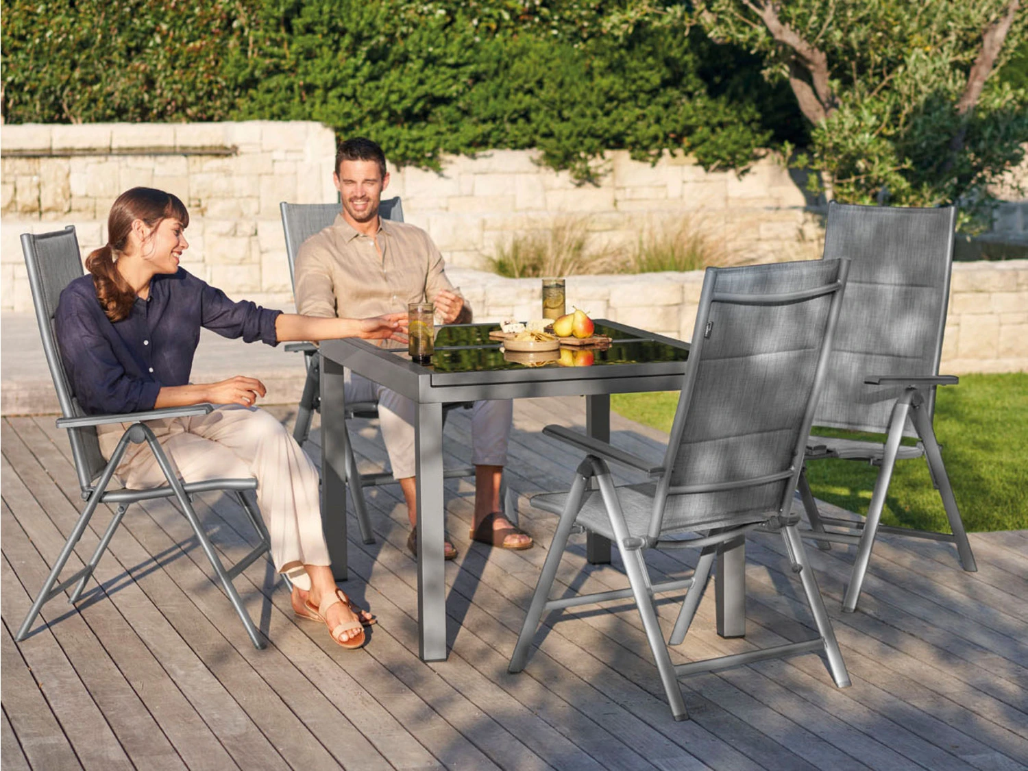 Livarno Home Alu-Premium-Set »Toronto« 5-teilig – Ausziehtisch & 4 Hochlehner gepolstert, anthrazit