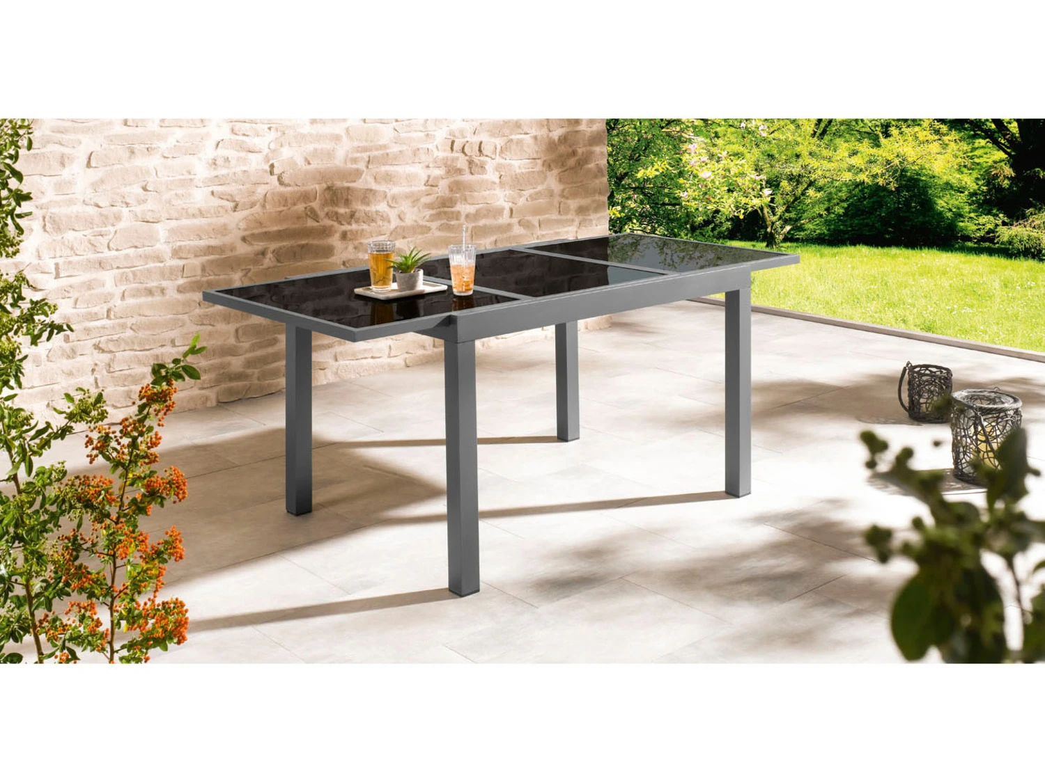 - Ausziehtisch: Sicherheitsglas, Aluminium