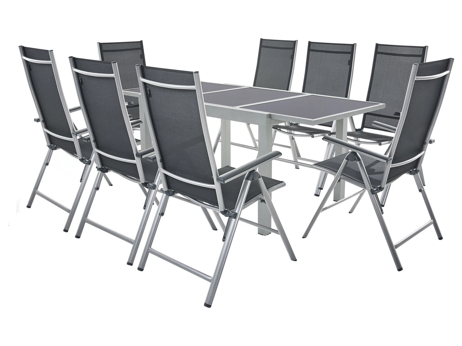 Livarno Home Alu-Set »Houston« 9-teilig – Ausziehtisch & 8 Hochlehner, silber/grau
