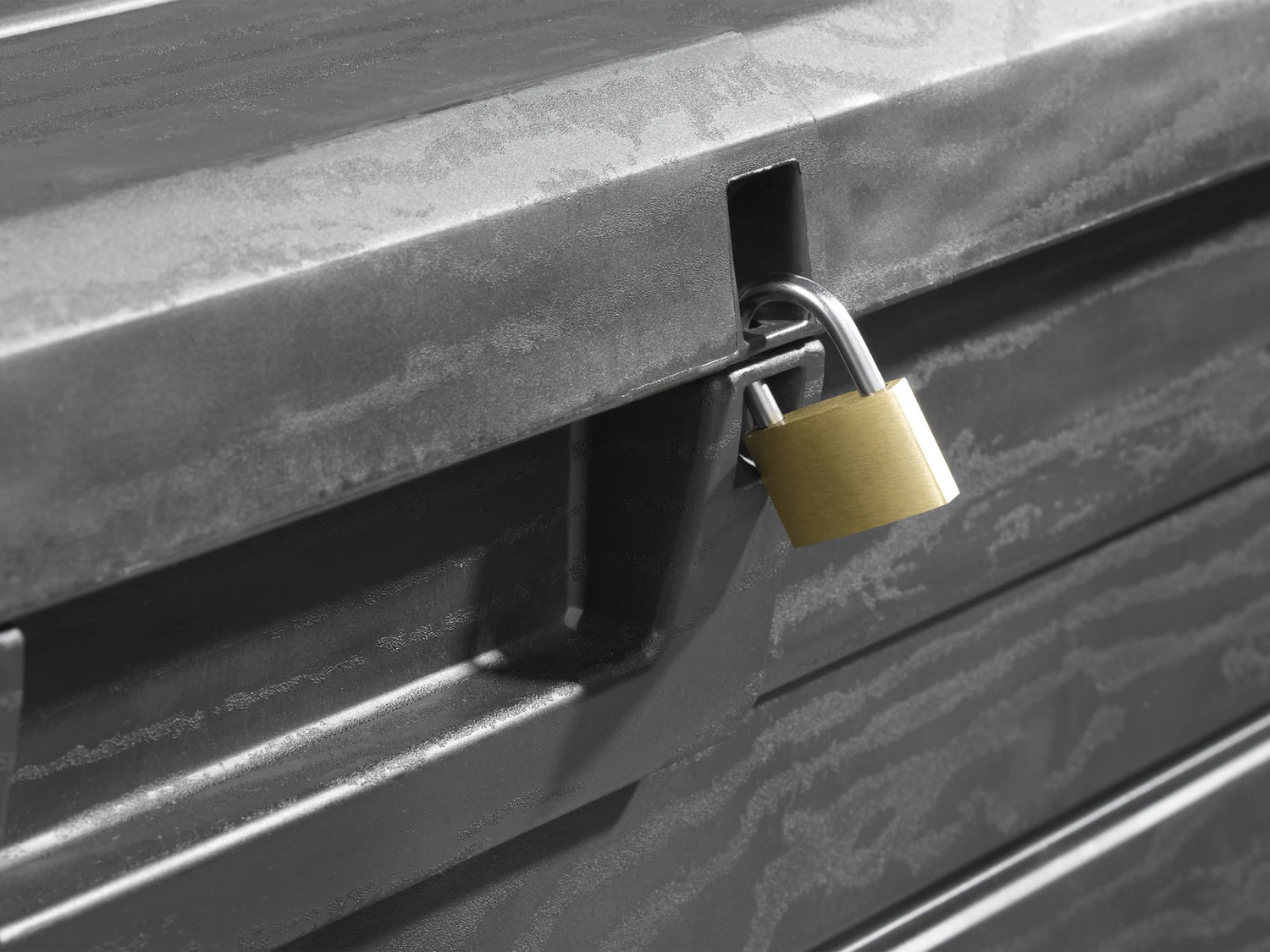 - Mit Vorhängeschlossvorrichtung (Schloss nicht enthalten)