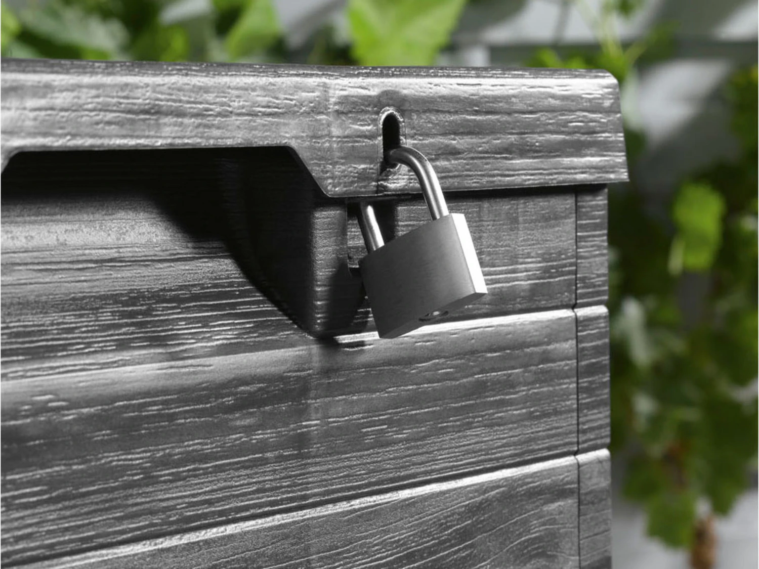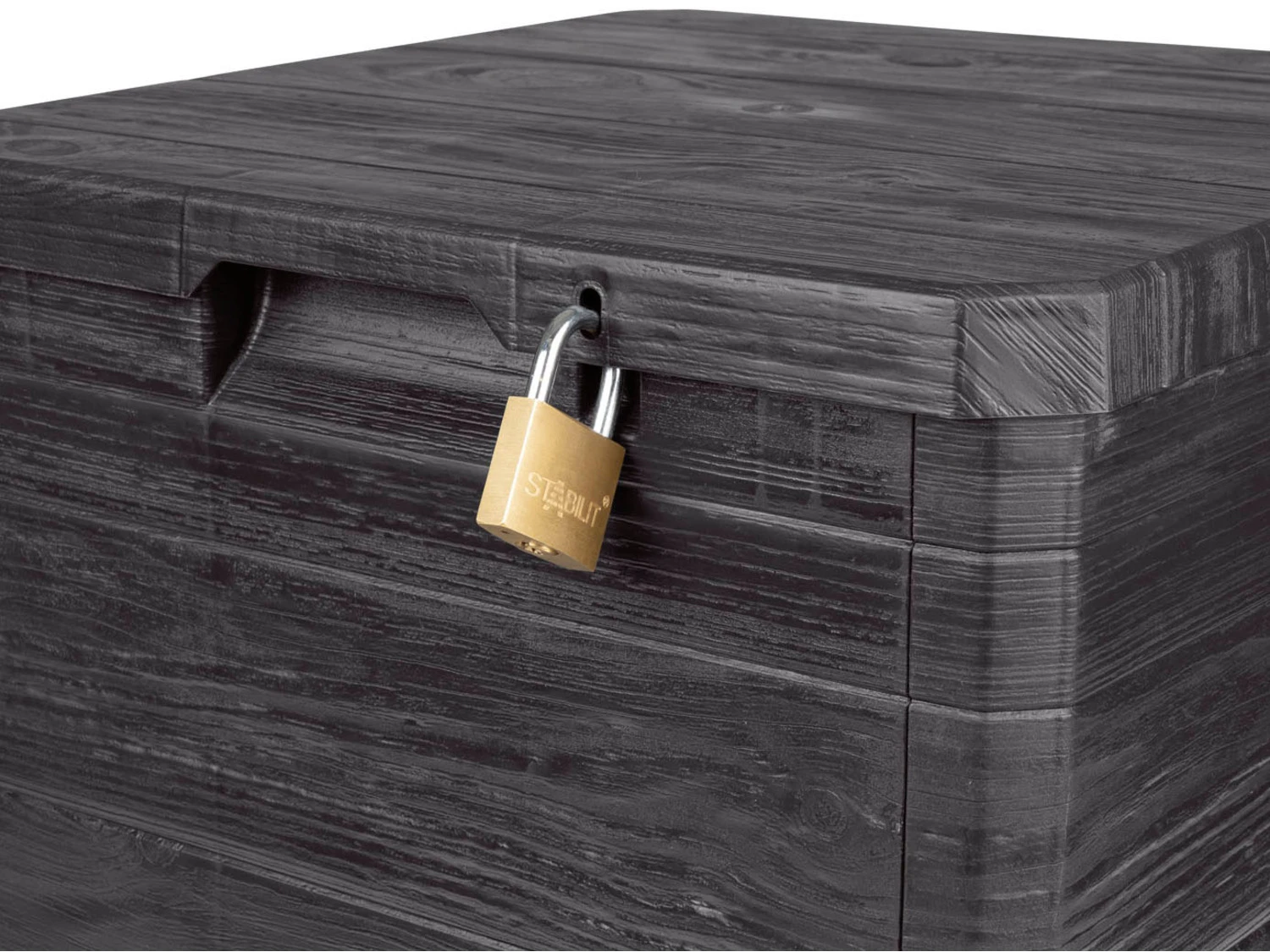 - Mit seitlichen Griffmulden und Hängeschloss-Vorrichtung (Schloss nicht enthalten)