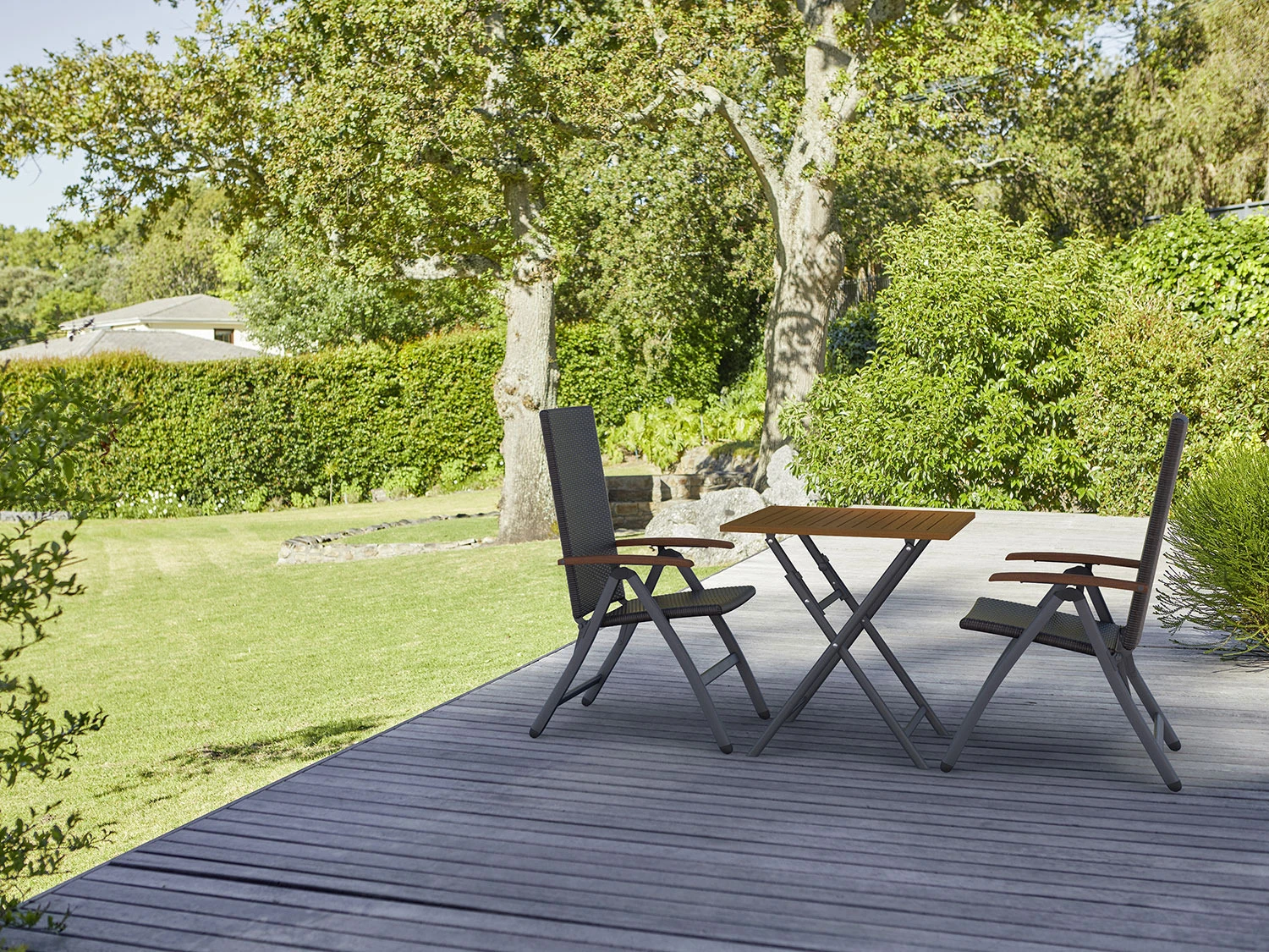 1 x Bistrotisch, 2 x Klappsessel