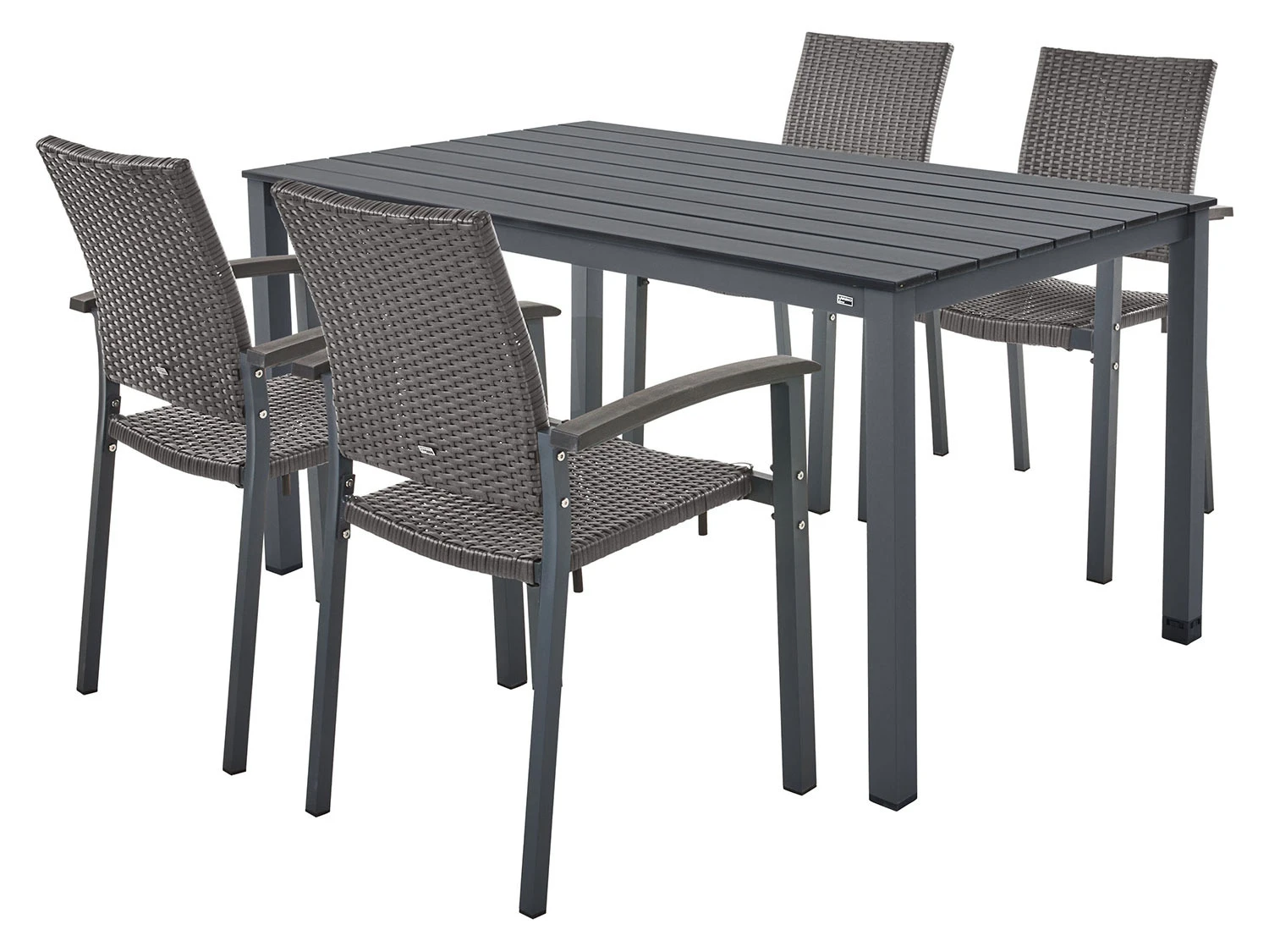 Livarno Home Geflecht-Set »Valencia« 5-teilig – Gartentisch & 4 Stapelstühle, zerlegbar, grau