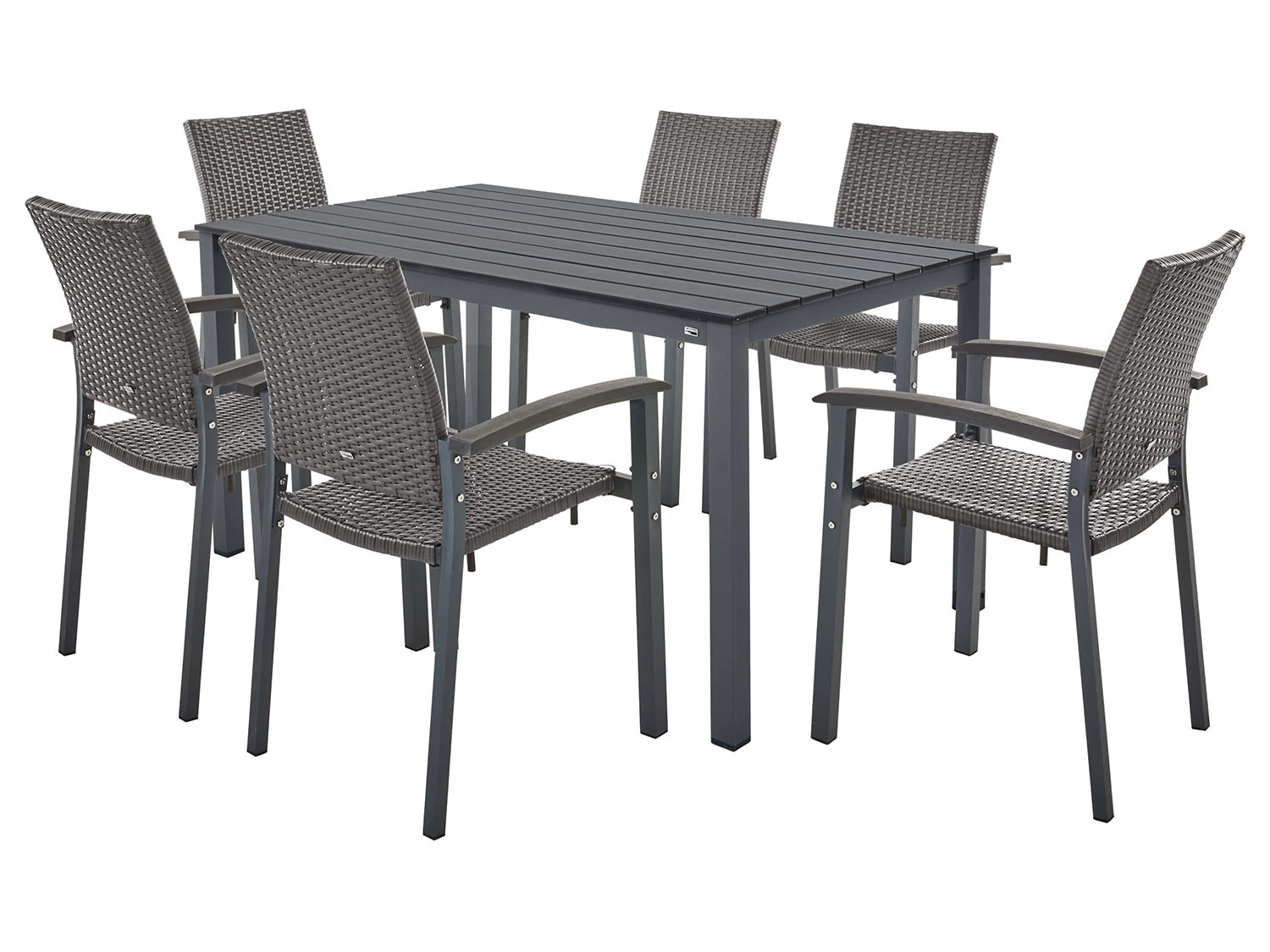 Livarno Home Geflecht-Set »Valencia« 7-teilig – Gartentisch & 6 Stapelstühle, zerlegbar, grau