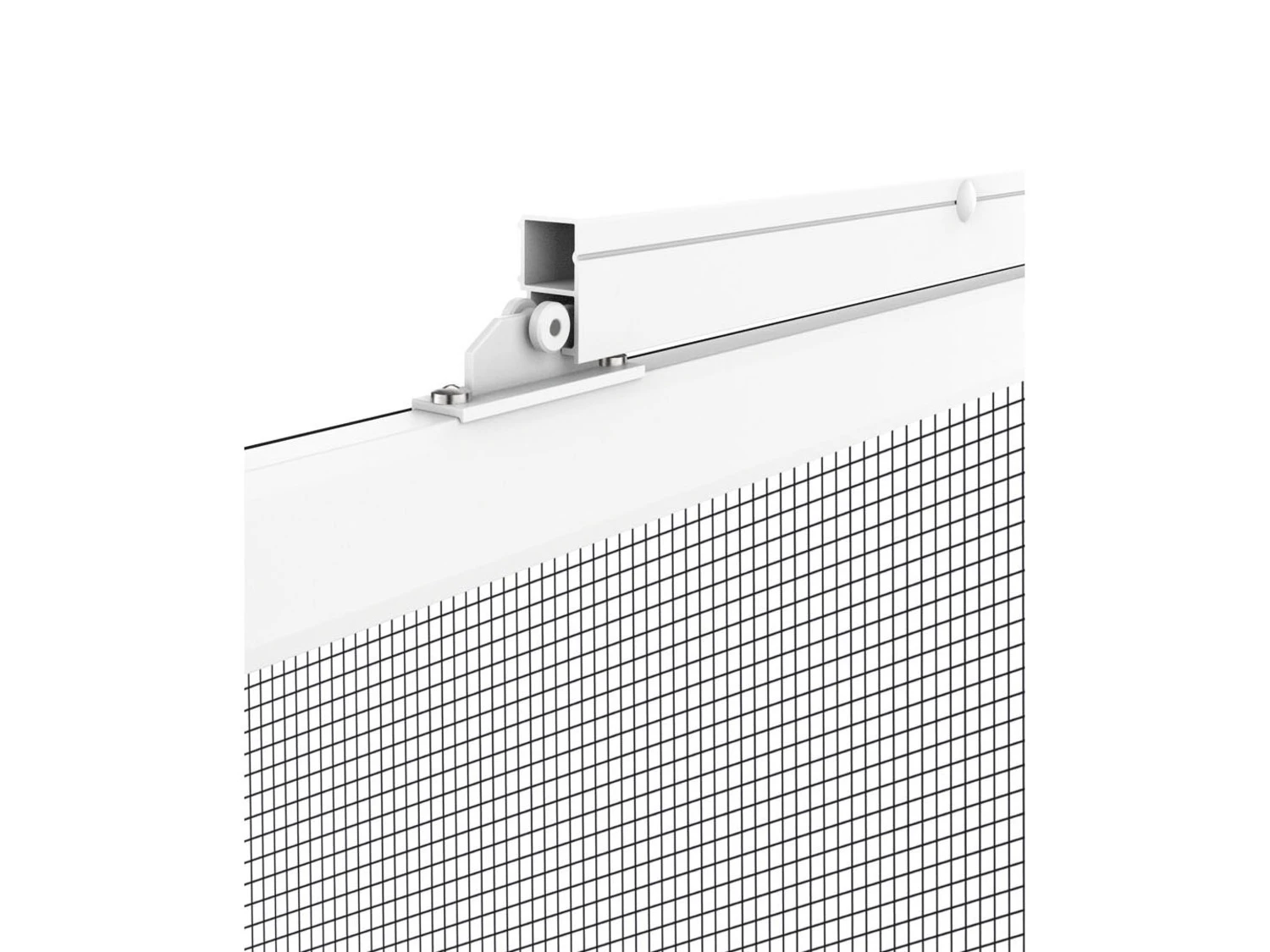 4x Führungsschiene, 2x Führungsrollen + Zubehör, 4 x Aluprofil, 1 x Aluminiumprofil f. Mittelsprosse, 2 x Aluminiumprofil, 4 x Eckverbinder mit Schnittkantenüberlappung, 2 x Vertikal- u. Mittelsprossenprofil-Verbinder, 2x Abdeckkappe, Kederleisten