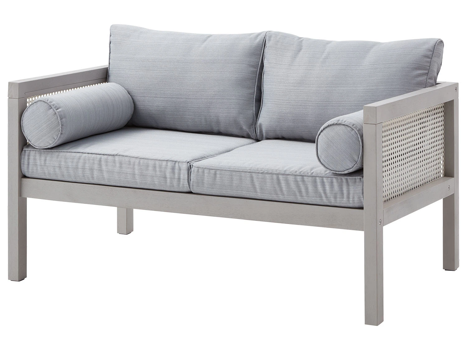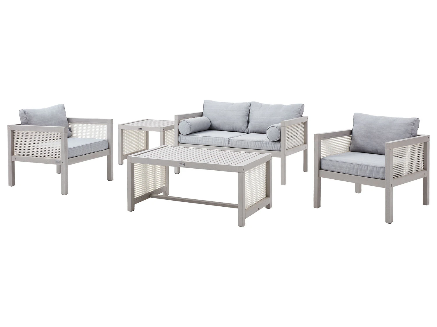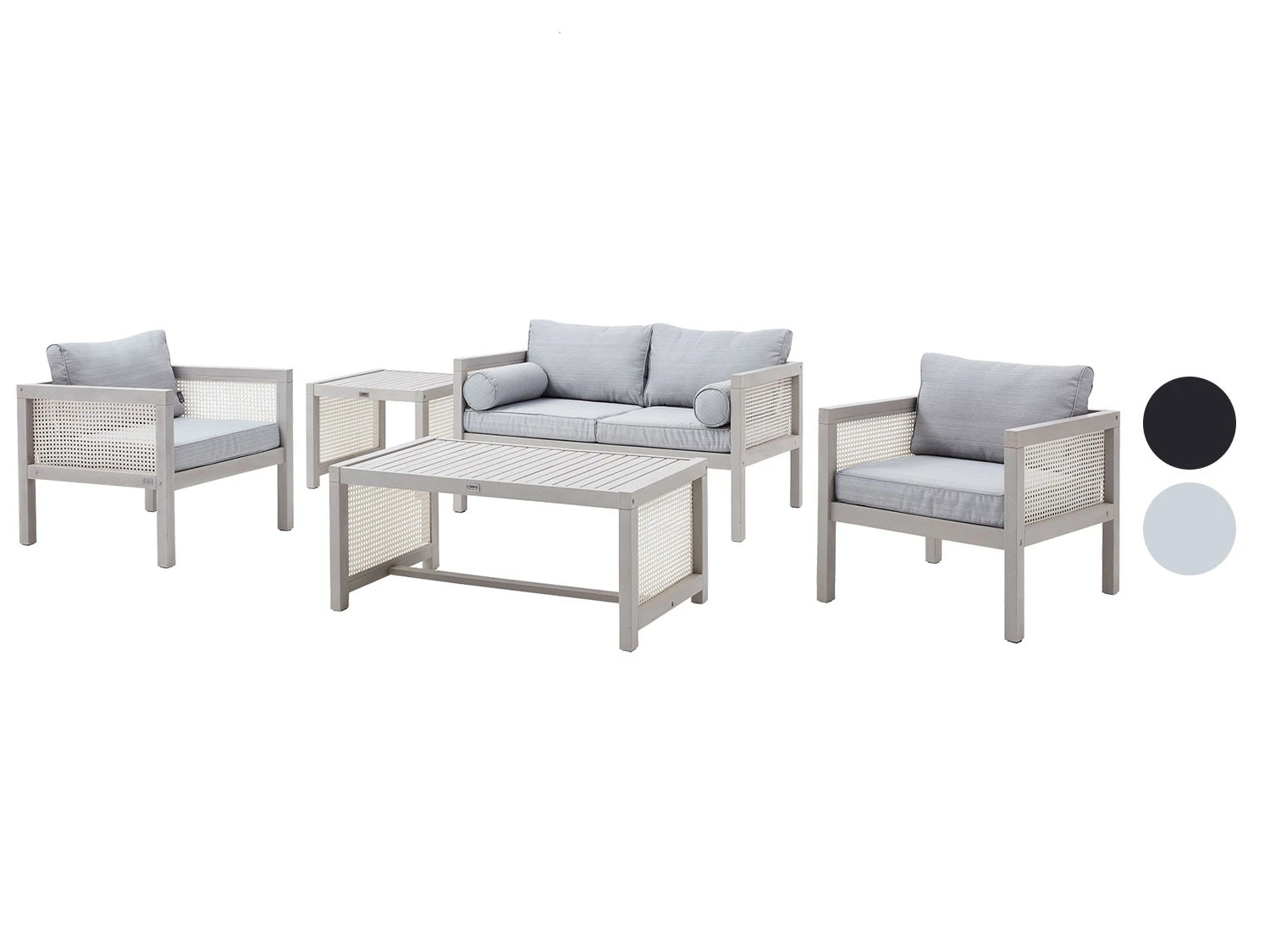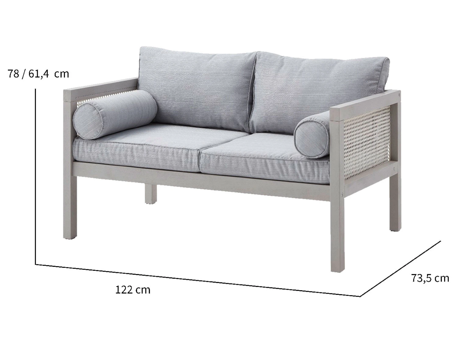 Akazienholz, Kunstgeflecht in Wiener Geflecht Optik, Polsterbezüge aus Polyester