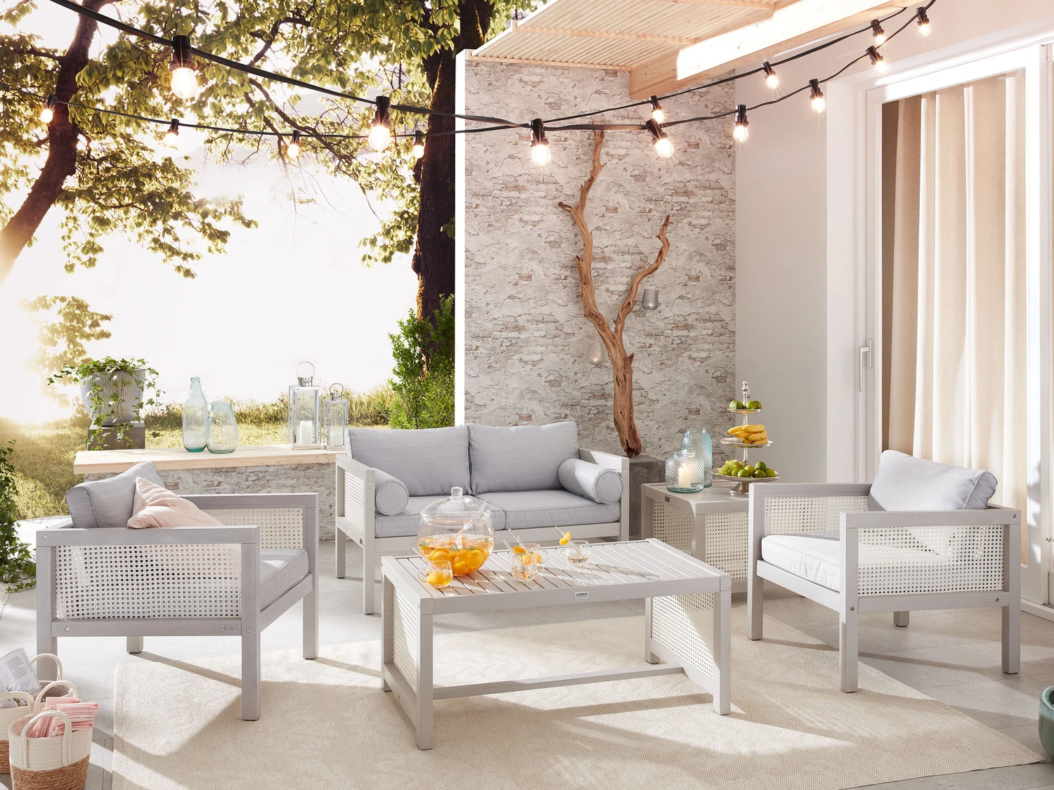 Den Sommer unter freiem Himmel genießen – mit dem Lounge Set Cane aus der LOOKS by Wolfgang Joop Kollektion wird der Garten, die Terrasse oder der Balkon zum absoluten Lieblingsort. Die 5-teilige Gartenlounge wird zum Centerpiece in Deinem Outdoor Bereich: Die Gartenmöbel kombinieren modernes Design mit zeitloser Eleganz und verschaffen eine ganz besondere Wohlfühlatmosphäre. Die modernen Wiener Geflecht Elemente machen diese Loungemöbel zu etwas ganz Besonderem. Die Cane Loungemöbel sind das Lieblingsmöbelstück von Wolfgang Joop.