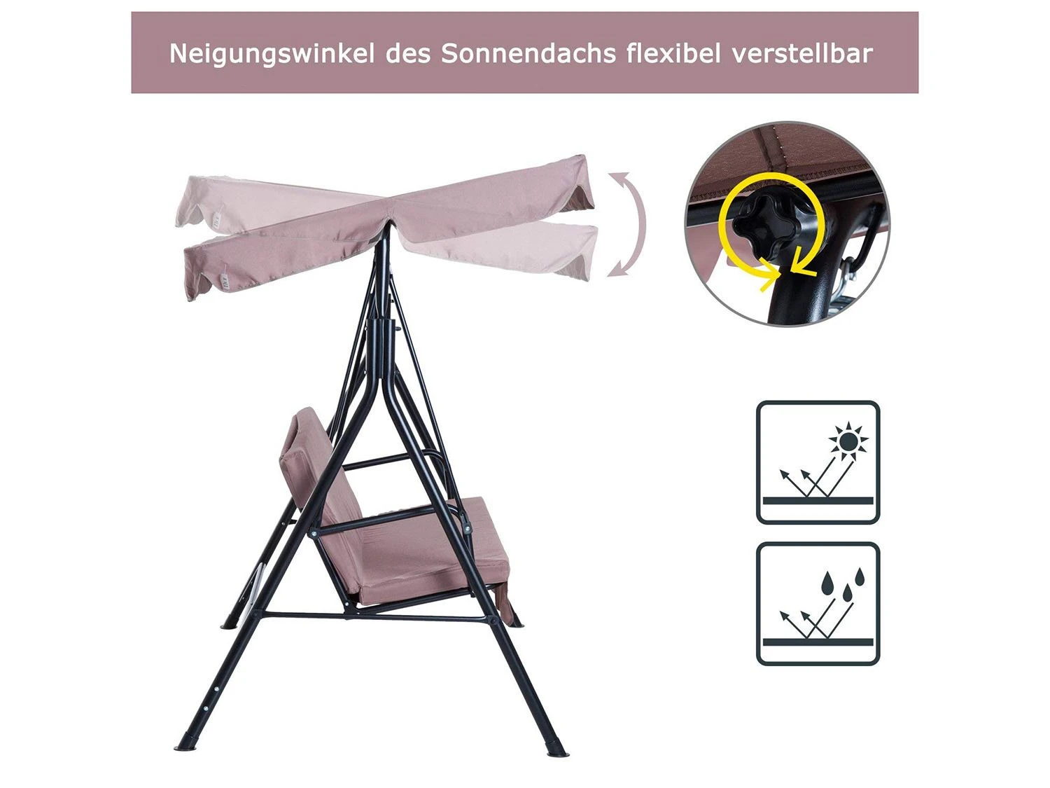 - Das wasserabweisende und neigungsverstellbare Dach schafft dabei bequemen Schatten auch unter starker Sonneneinstrahlung