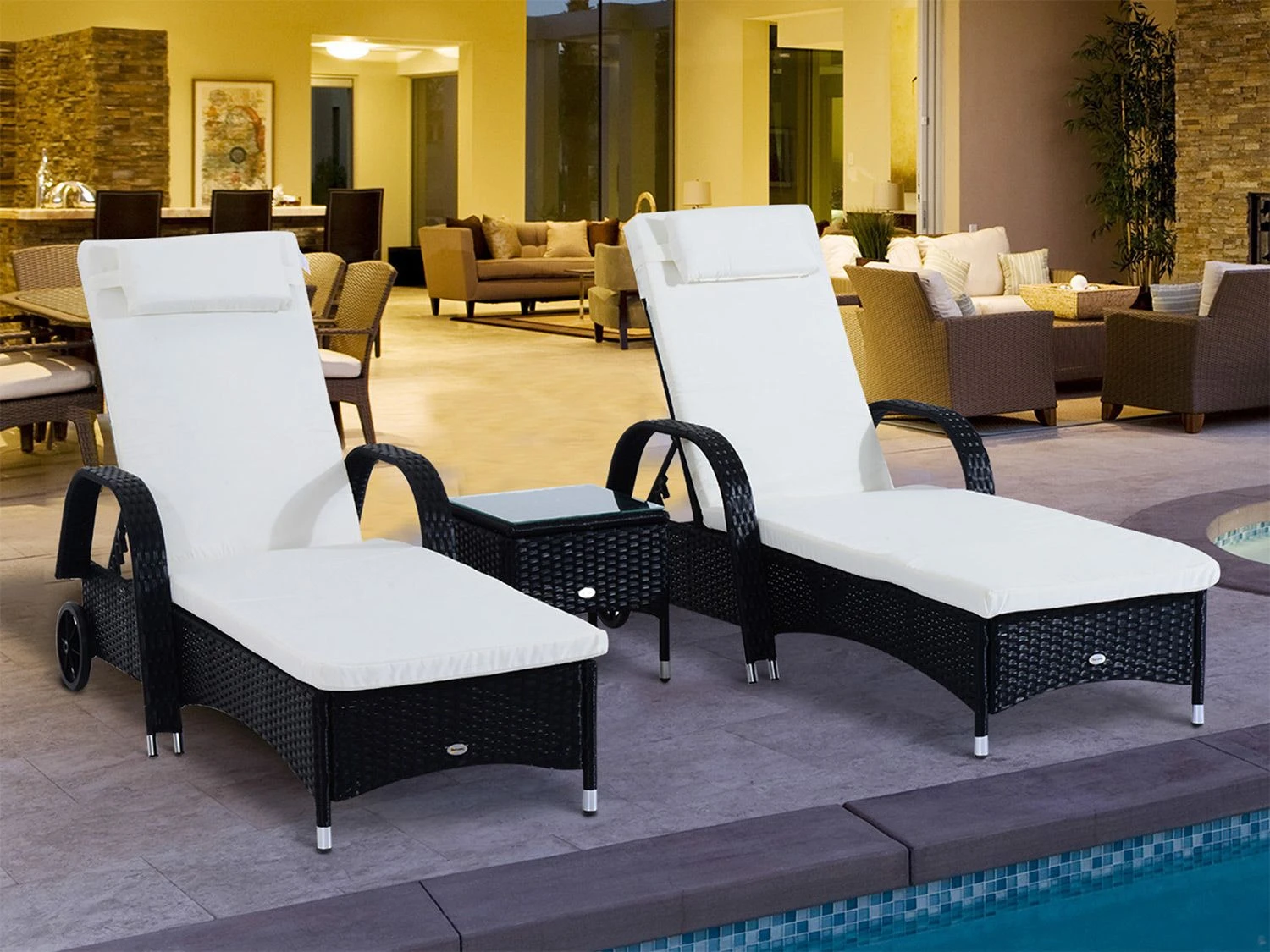 Bestehend aus zwei Sonnenliegen und einem Beistelltisch ist es das perfekte Set für gemütliche Sommertage zu zweit