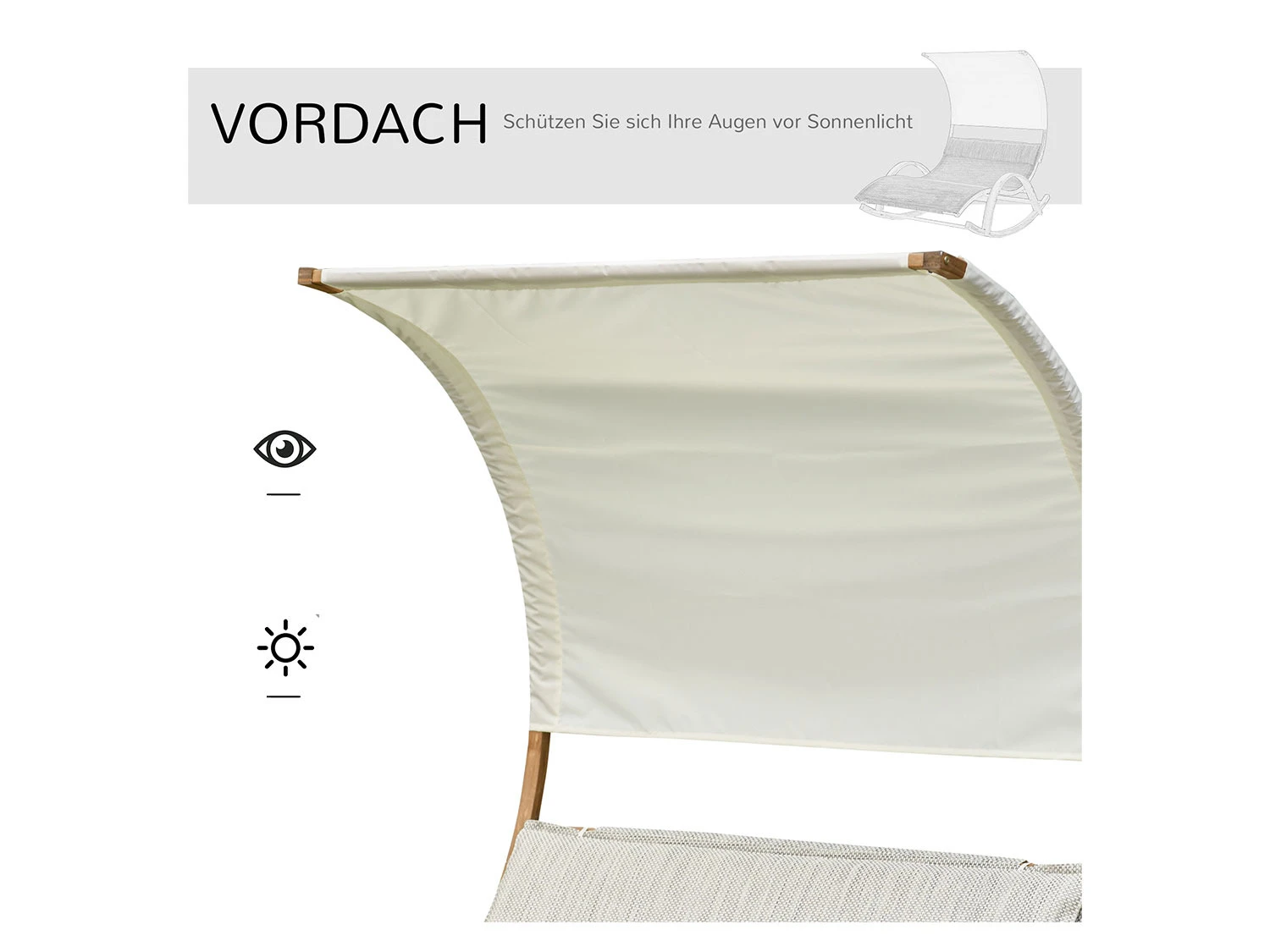 - Sonnendach: ca. B 174 x H 120 cm