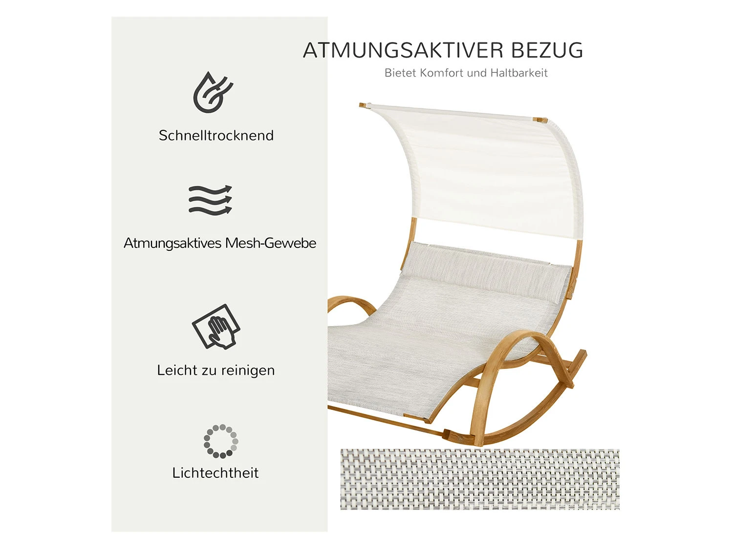 Auf unseren Liegen von Outsunny lässt sich Leben unter dem blauen Himmel im Garten einfache genießen. Die helle Farbe und die glatte Struktur lassen unsere Liege noch luxuriöser aussehen. Die Belastbarkeit und Liegefläche ist groß genug für zwei Erwachsene. Durch sein leichtes Gewicht lässt er sich Problemlos überall hin mitnehmen, egal ob du im Garten,Terrasse oder am Strand entspannen willst.