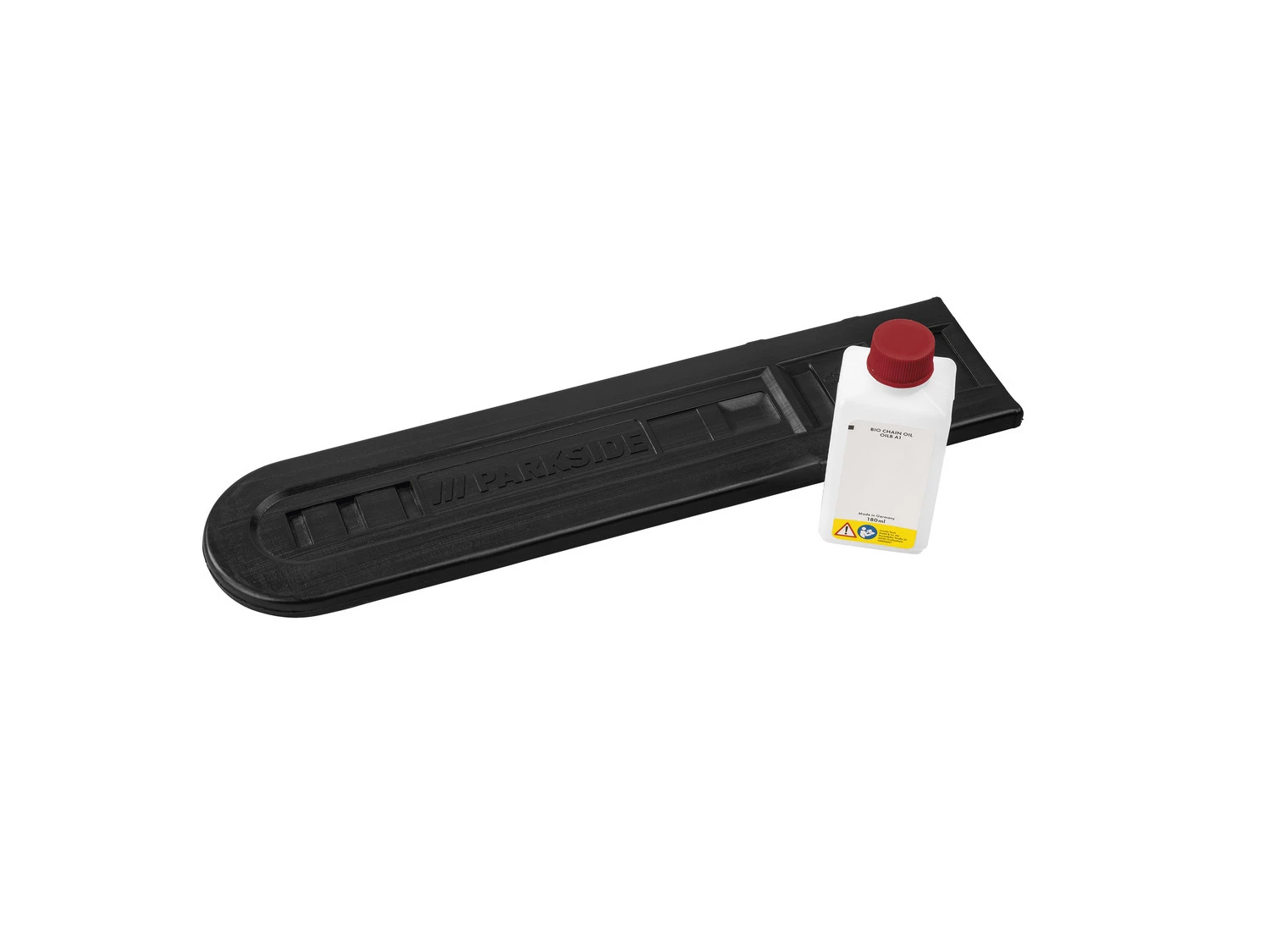 Enthaltenes Zubehör: 1 Schwertschutzhülle, 180 ml Bio-Kettenöl