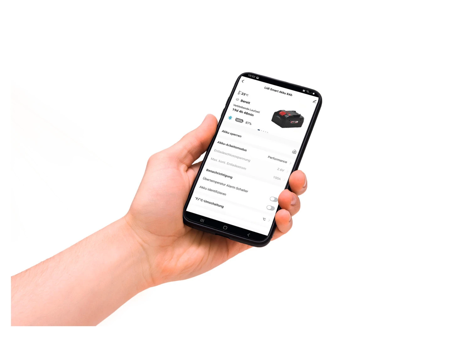 - Akku-Daten abrufen und Leistungsparameter konfigurieren via Bluetooth® über die Lidl Home App