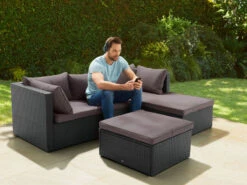 LIVARNO Home Loungeecke, 3-teilig, Aus Alu Und Holz, Braun/grau