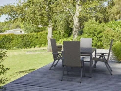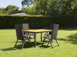 LIVARNO Home Geflecht-Set »Valencia« 5-teilig – Gartentisch & 4 Stapelstühle, Zerlegbar, Grau