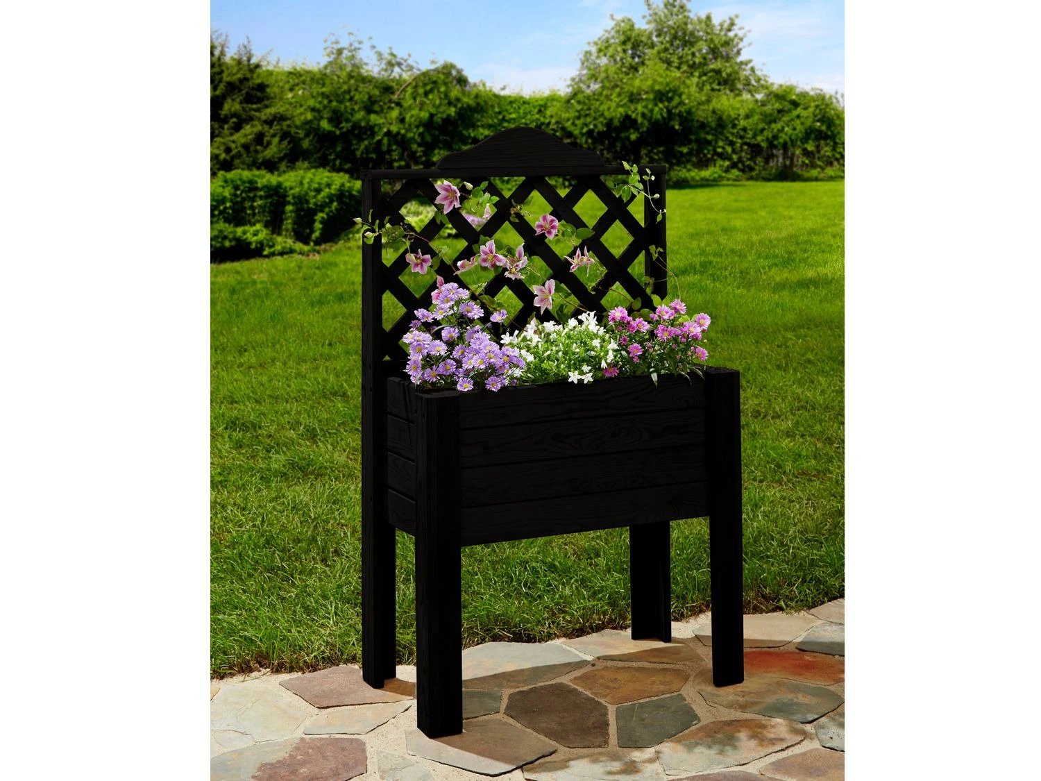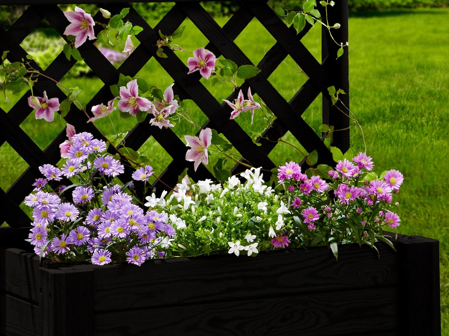 2in1: Pflanzkasten aus massiver Kiefer mit Rankgitter