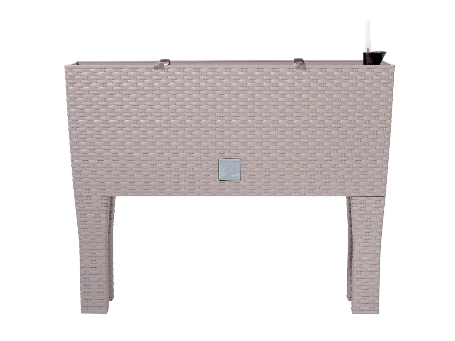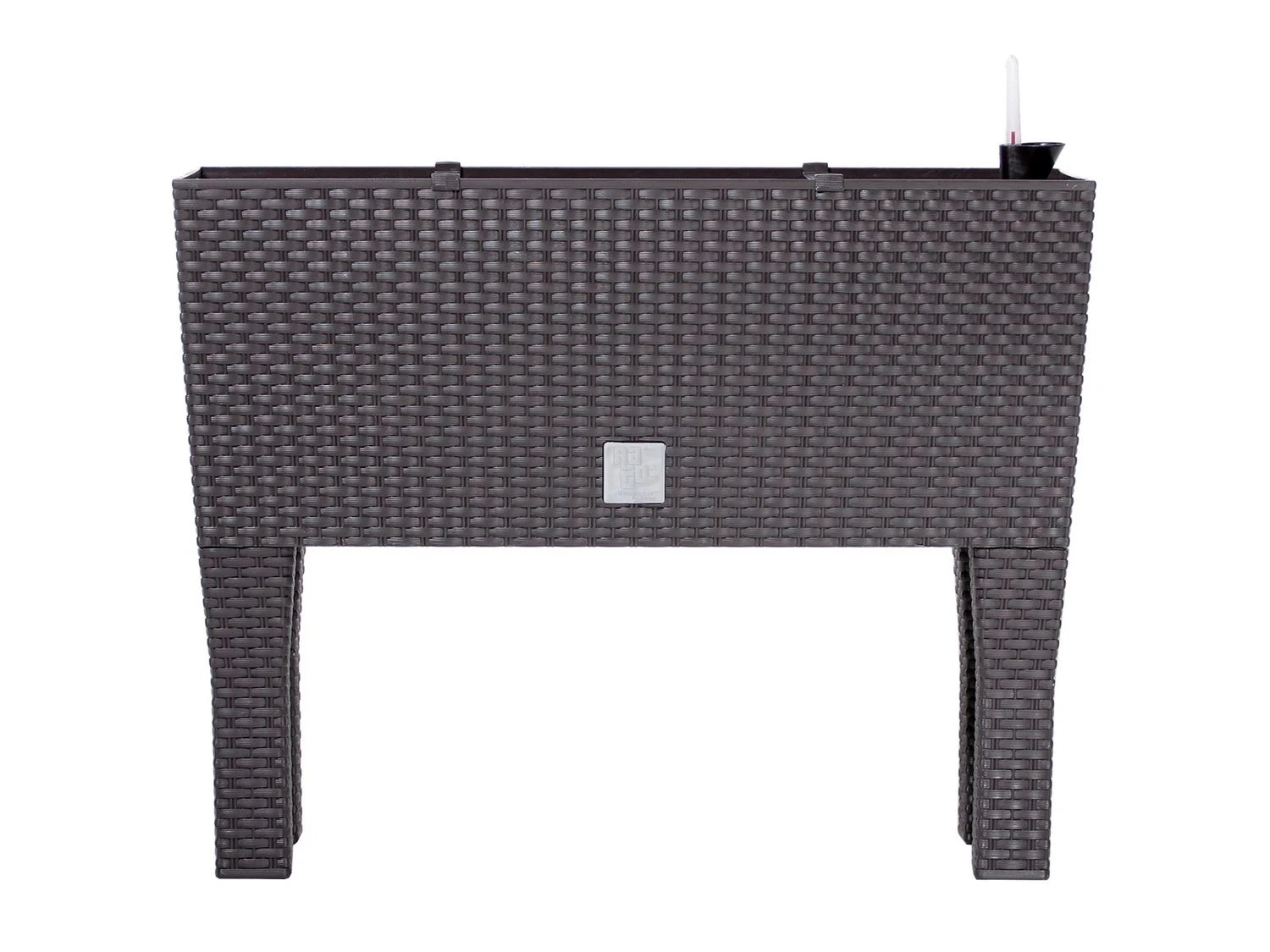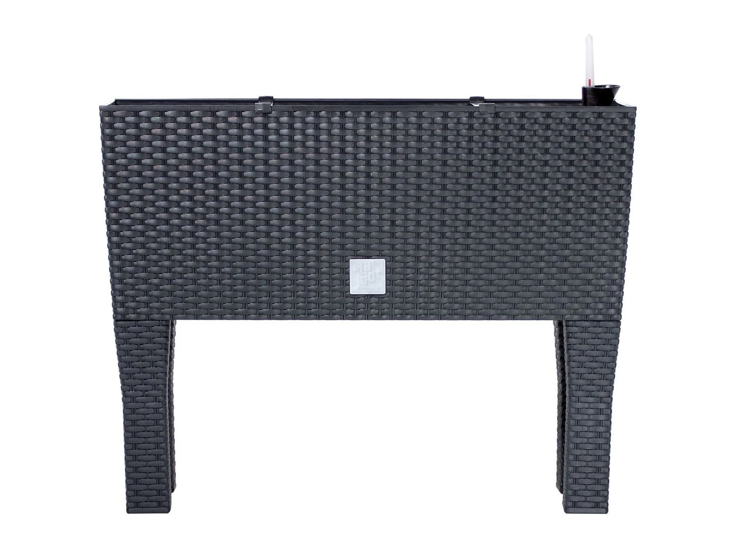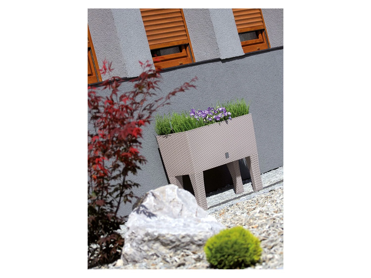 Der Pflanzkasten ist UV-beständig und wetterfest. Dadurch lässt er sich als schicker Blickfang in Garten oder Terrasse aufstellen. Der Rato Case High Blumenkasten kann sich durch seine modernen Farben und die Rattanoptik auch sehr gut in Wohnungräumen aufstellen. Der Blumenkasten steht auf vier Füßen und ist mit seiner Höhe von 60 cm bequem zu bepflanzen.