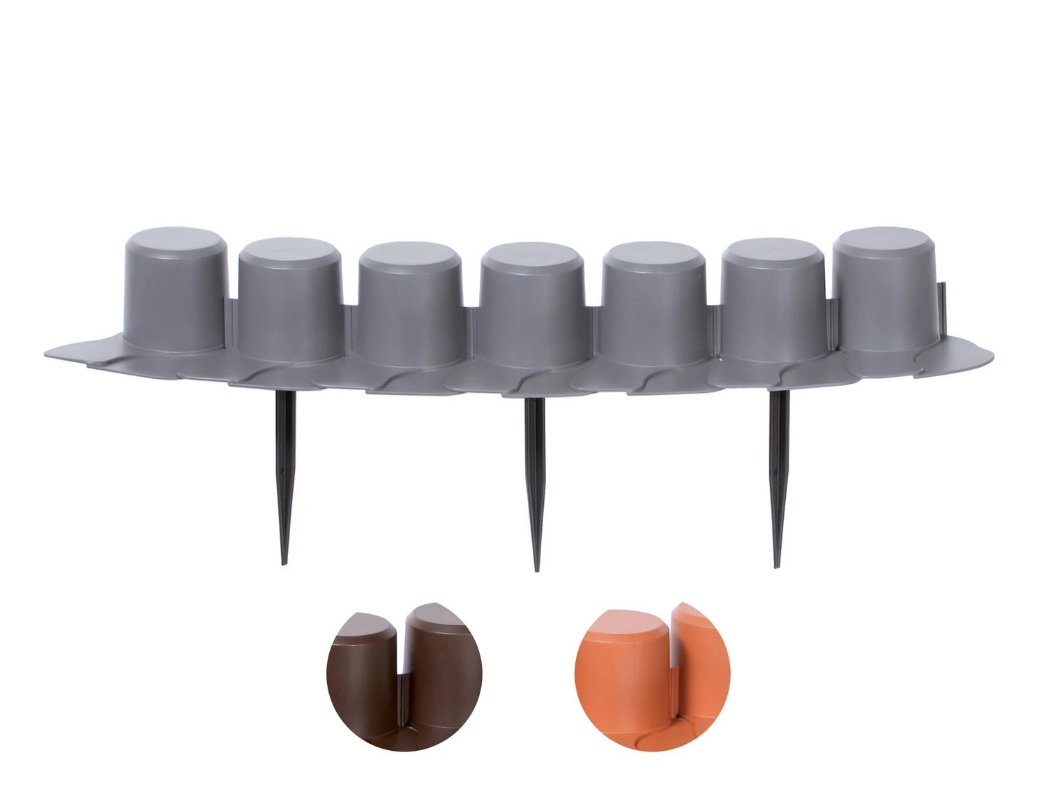 Die Rasenkante Palisade ist ausgestattet mit separat montierten Schrauben, die die Montage und Demontage der Palisade erleichtern. Das praktische Modulverbindungssystem ermöglicht es Ihnen die Form frei zu formen, während die Räder des Rasenmähers auf dem speziellen Flansch fahren können. Perfekt zum Beispiel zur Trennung des Rasens von Beeten.
