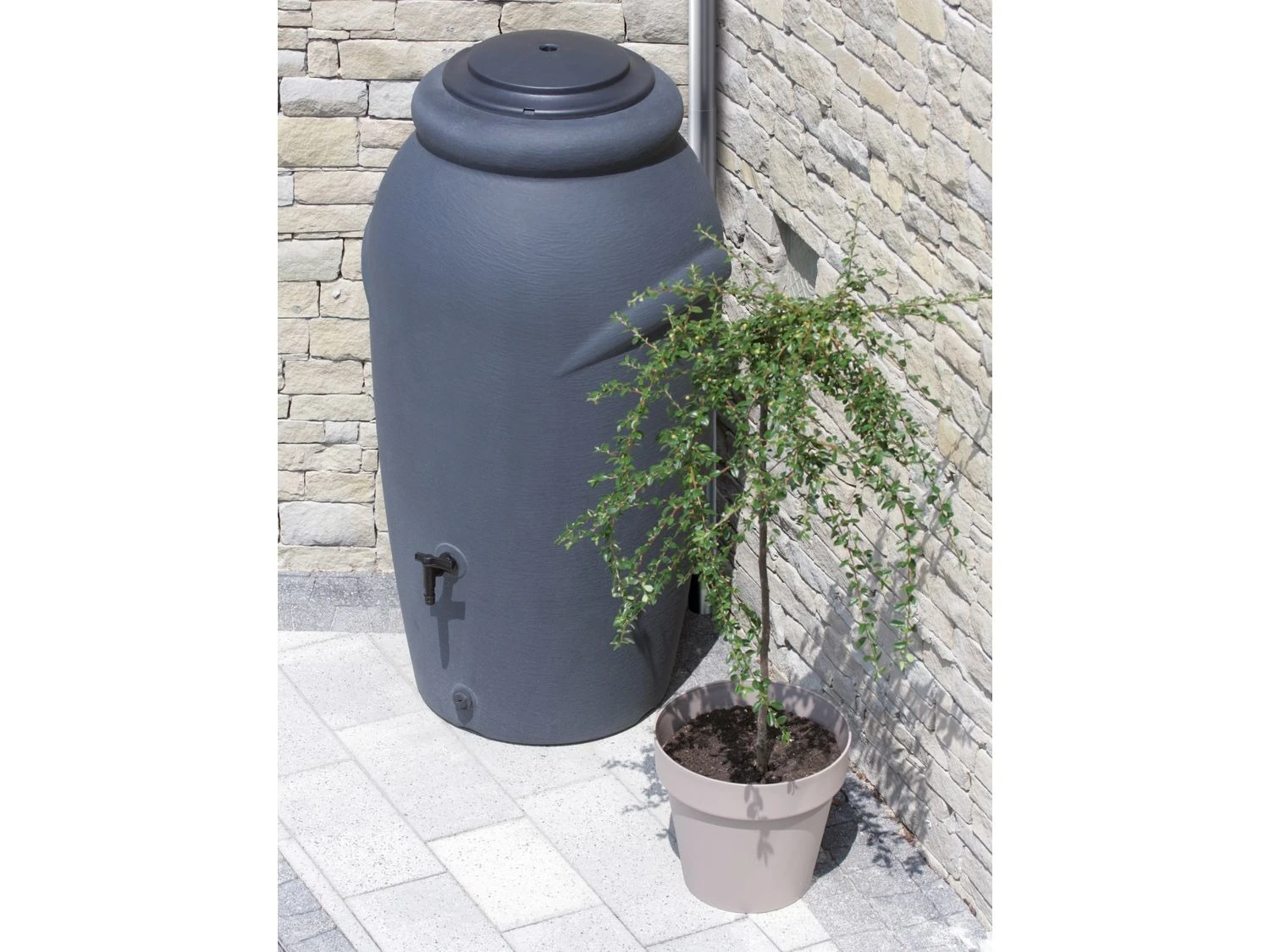 Mit dem Regenwassertank Aquacan erhältst du eine Regentonne in Form einer antiken Amphore. Der Regenbehälter besitzt neben zwei praktischen Tragehilfen an den Seiten auch einem Deckel sowie einen Einsatz zur individuellen Bepflanzung.