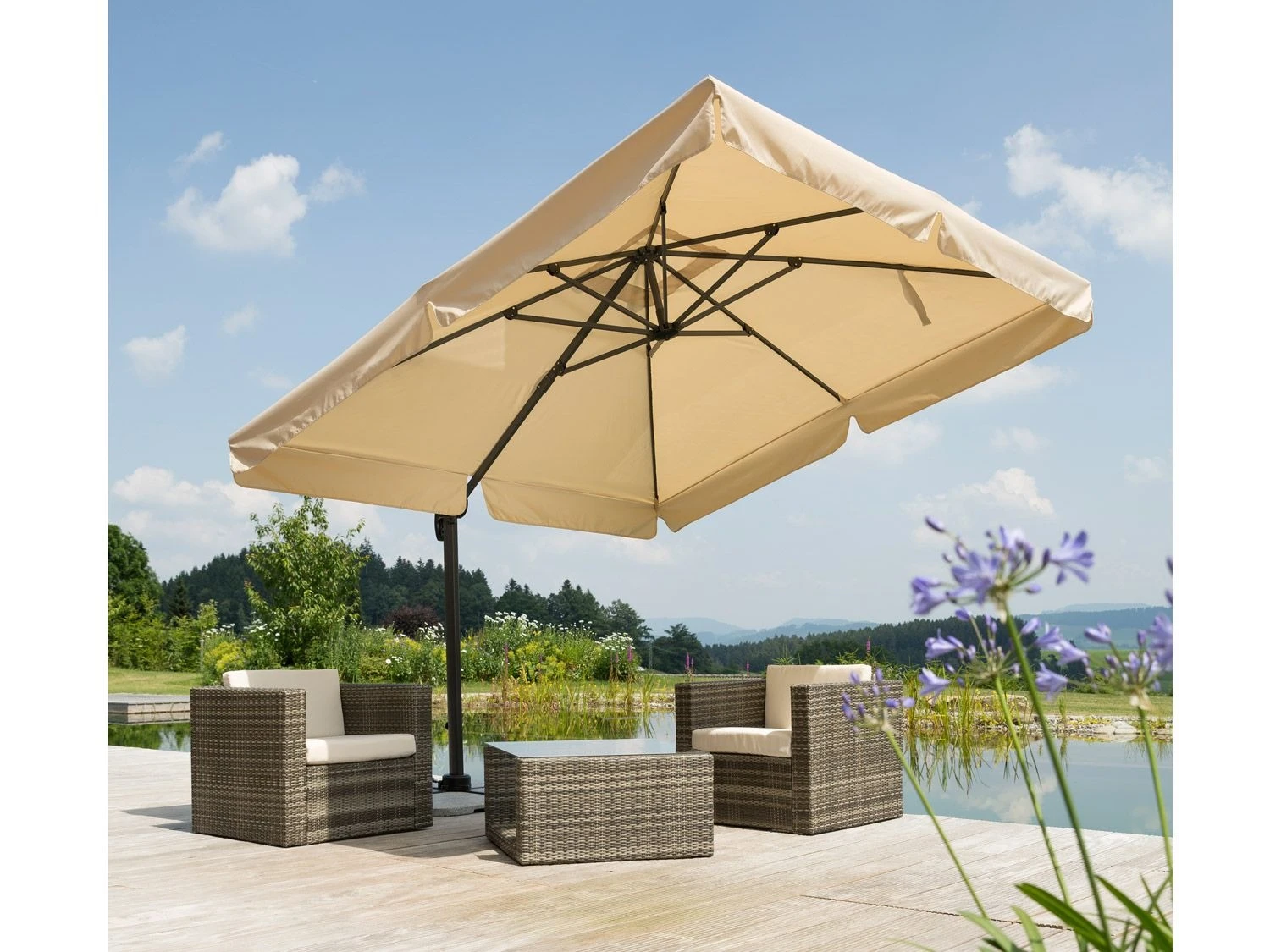 - Quadratischer Schirm: ca. L 300 x B 300 cm