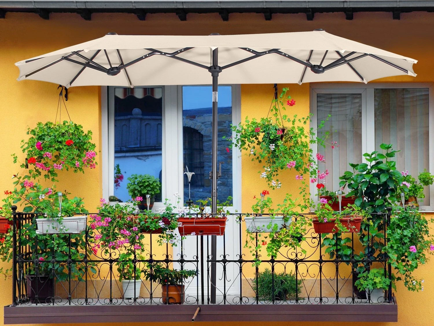 - Ideal zur Verwendung auf dem Balkon, da der Schirm eine maximale Höhe von ca. 220 cm und eine Tischfreiheit von ca. 140 cm hat