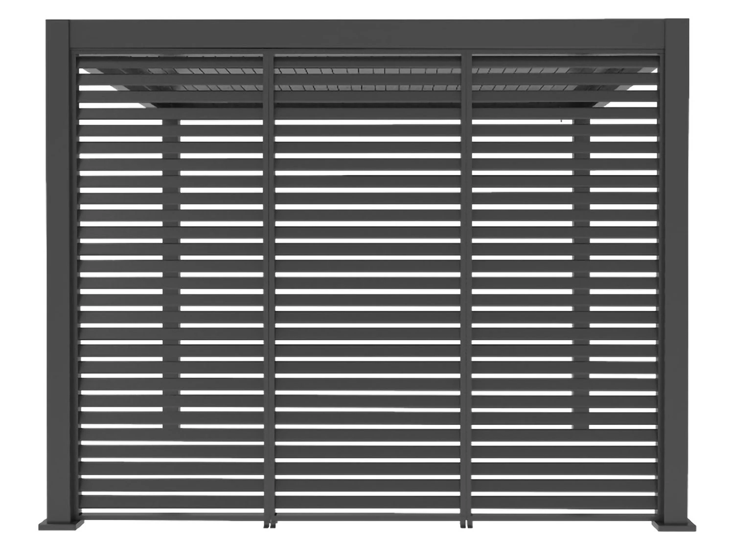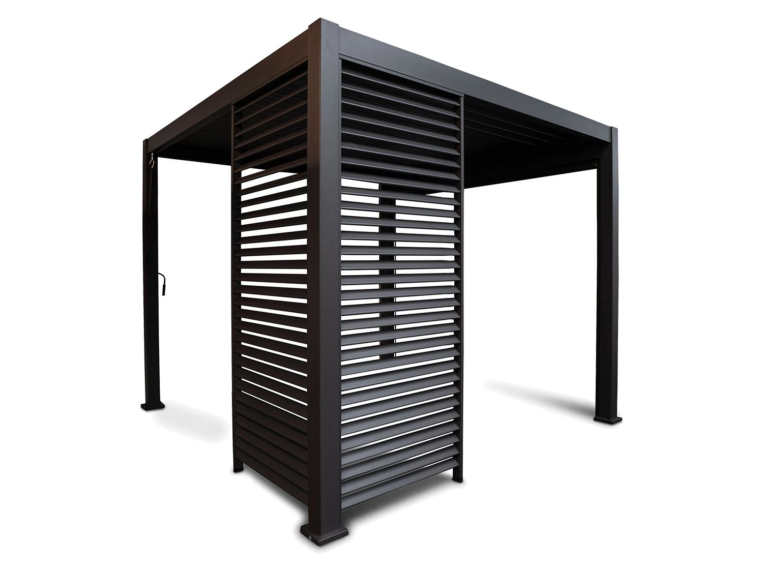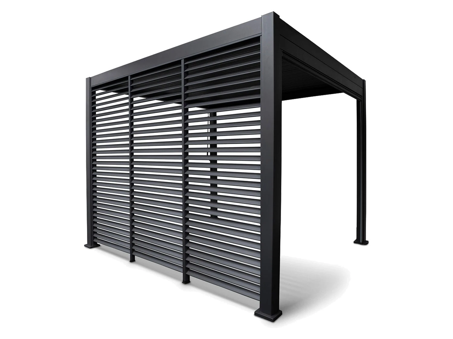 - Du kannst das Seitenwandpaneel beliebig an deinen Weide Lamellendach anbringen, auf der linken oder rechten Seite oder du befestigst 3 Seitenwandpaneele und füllen somit eine Länge oder Breite auf