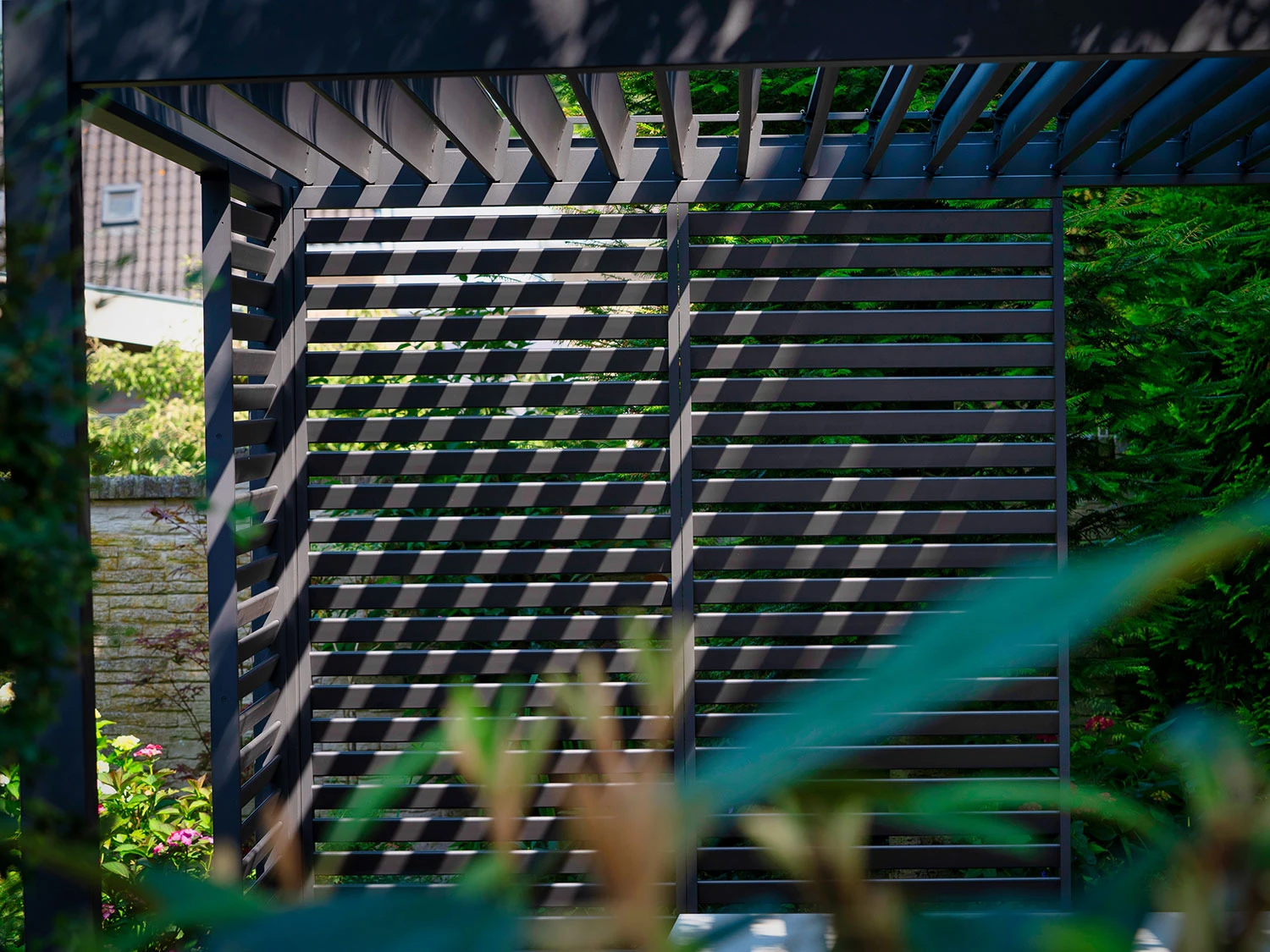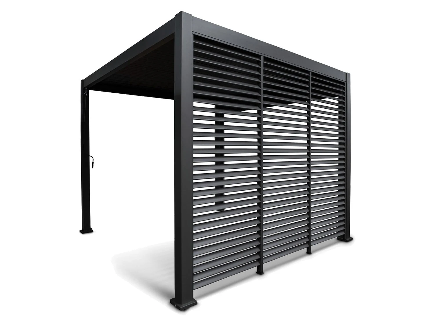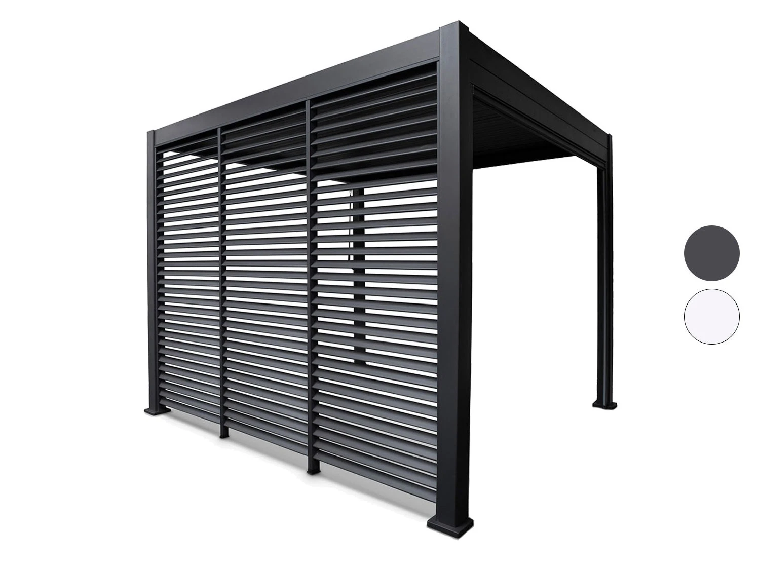- Du kannst das Seitenwandpaneel beliebig an deinen Weide Lamellendach anbringen, auf der linken oder rechten Seite oder du befestigst 3 Seitenwandpaneele und füllen somit eine Länge oder Breite auf