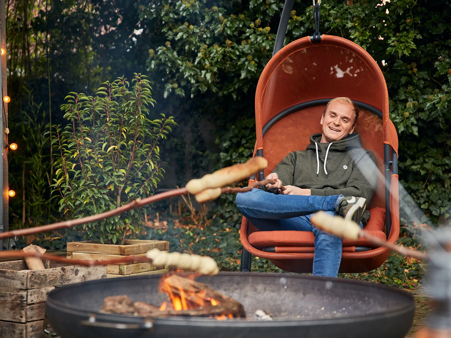 - Der Hängesessel ist mit wenigen Handgriffen aufgebaut