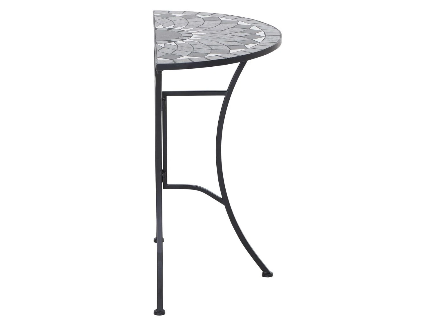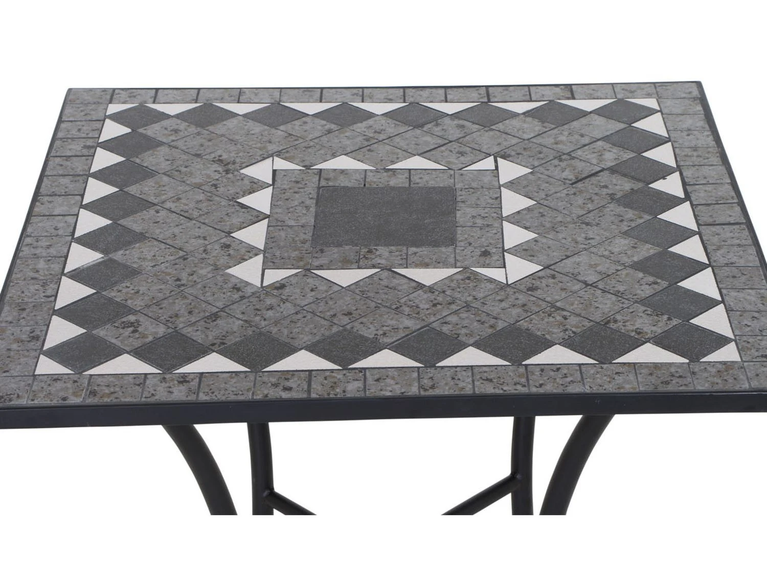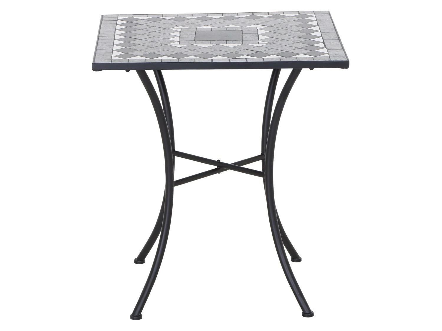 - Die Tischplatte ist in Mosaik-Optik
