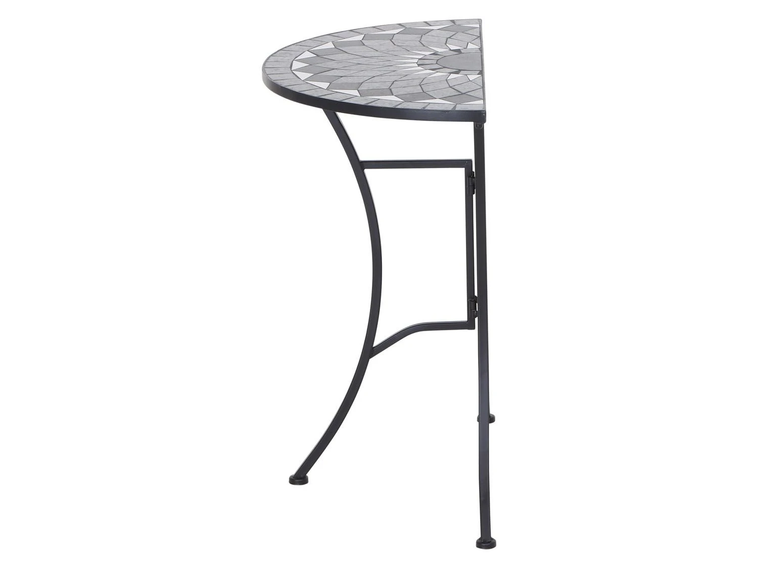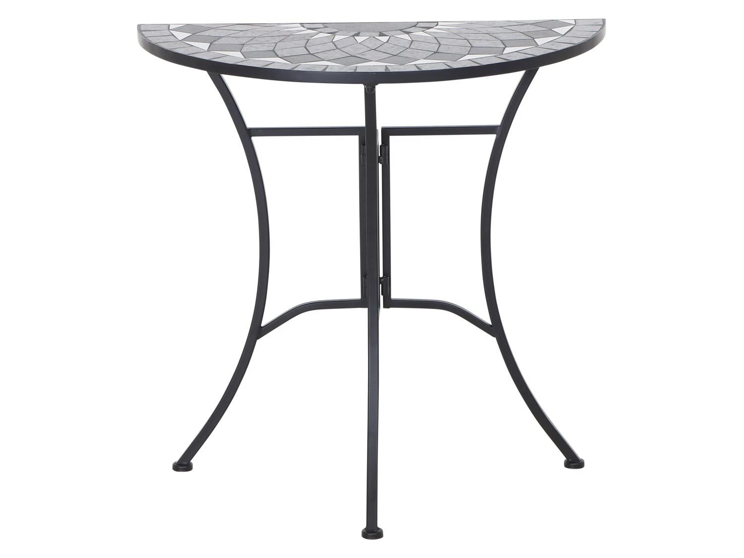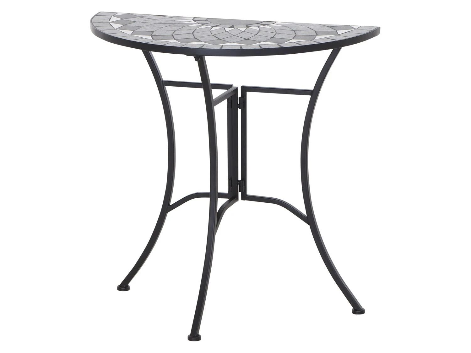 - Die Tischplatte ist in Mosaik-Optik