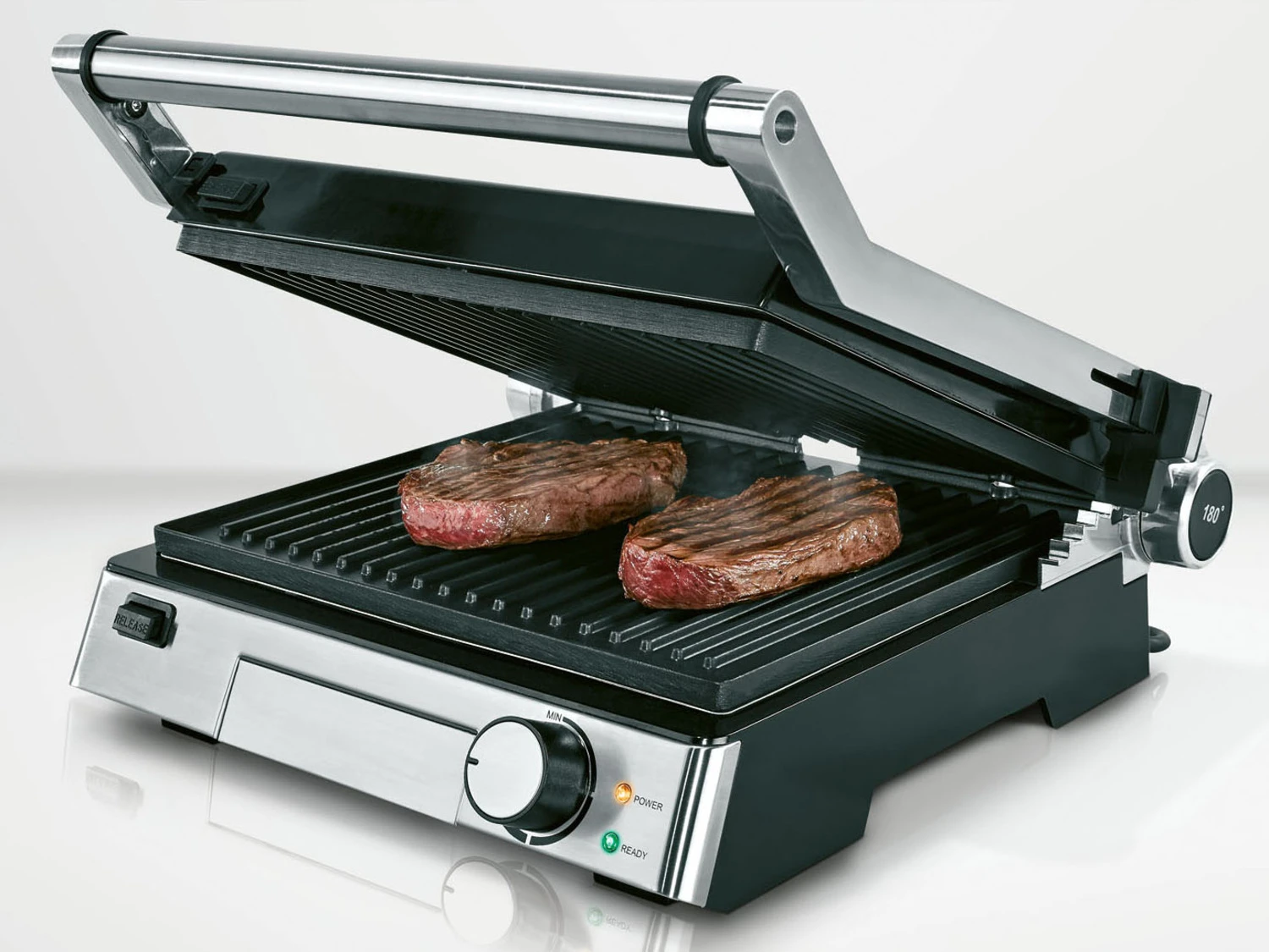 - Grillplatten, Reinigungsschaber und Fettauffangschale spülmaschinengeeignet